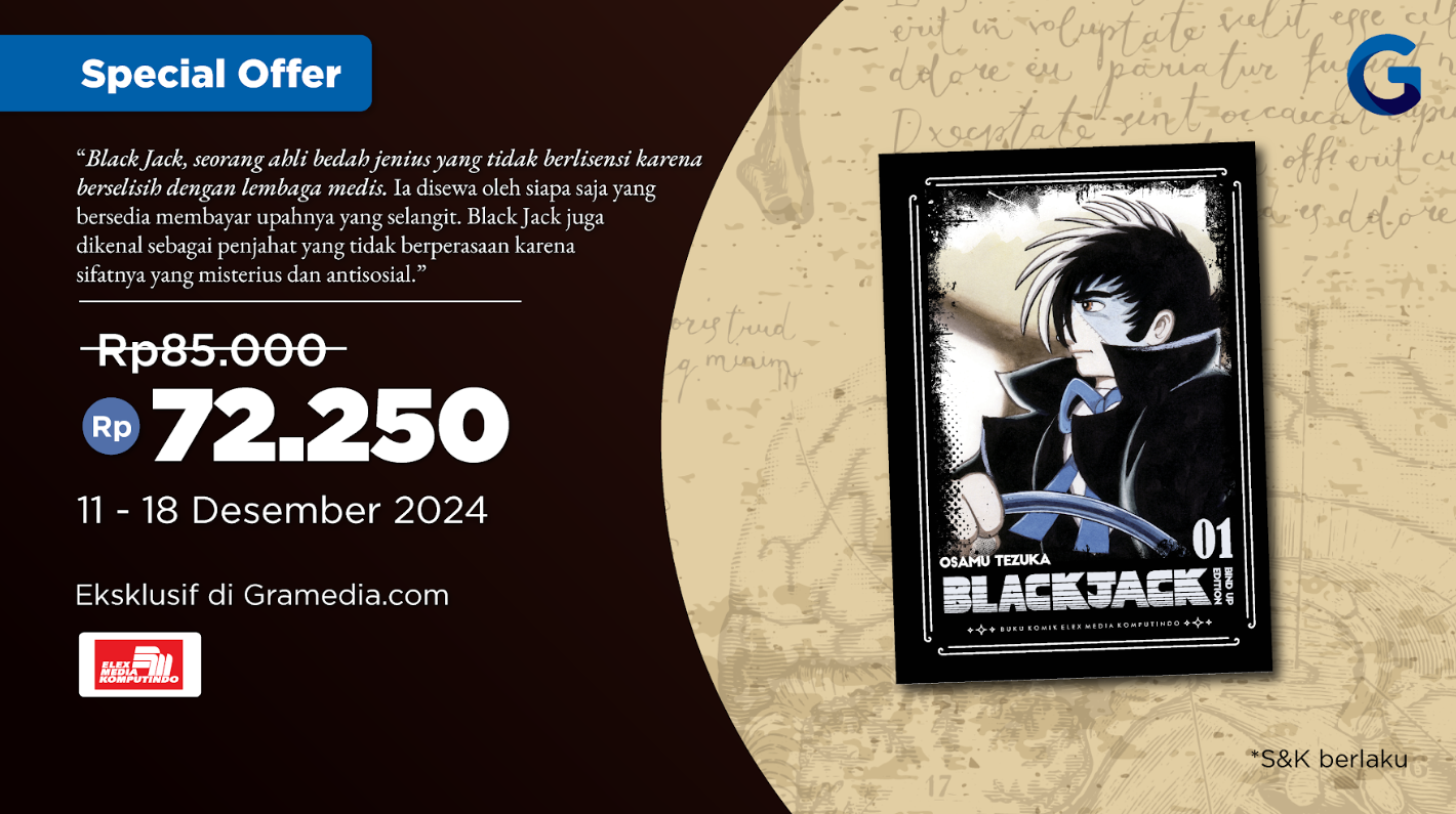 Dalam special offer Black Jack Bind Up Edition 1, kamu bisa dapatkan seri khusus Black Jack dengan harga yang sangat spesial cuman Rp 72.250 aja lho, Grameds!🤑✨