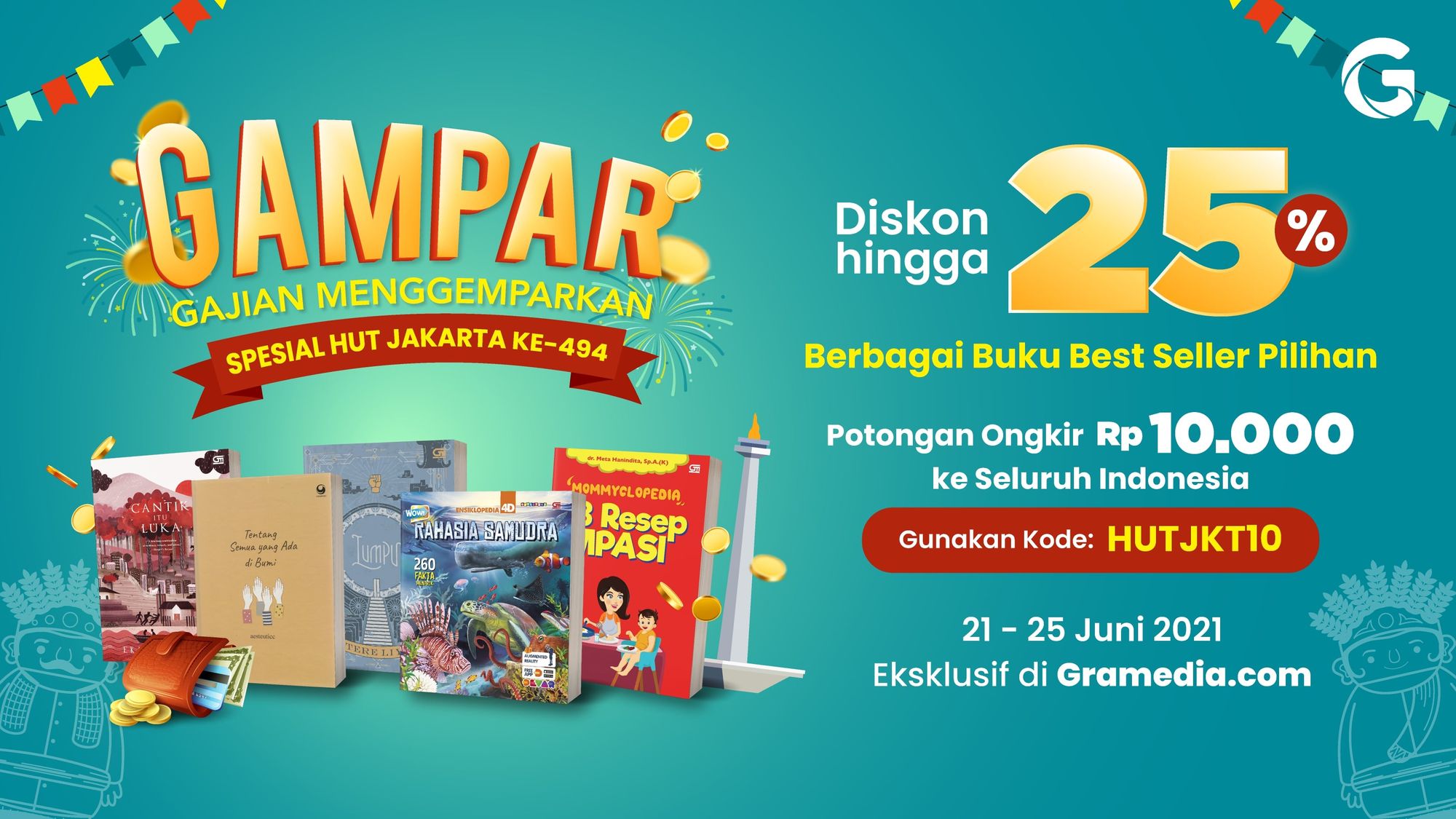 Daripada kite sedih-sedih, Admin mau ngabarin yang bikin gembira-gembira aja. Karena spesial HUT Jakarta, promo GAMPAR alias Gajian Menggemparkan di Gramedia.com bulan ini kagak cuma kasih diskon sampe 25% aja, tapi ade juga gratis ongkir Rp 10 ribu!