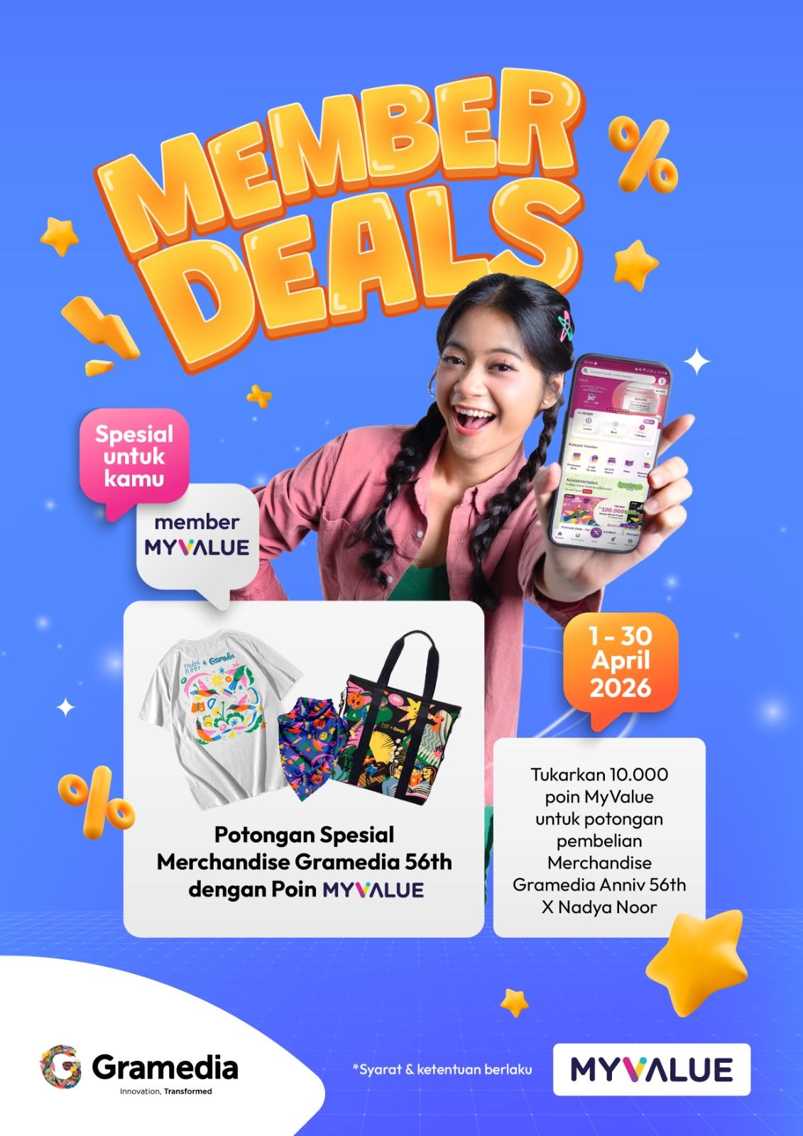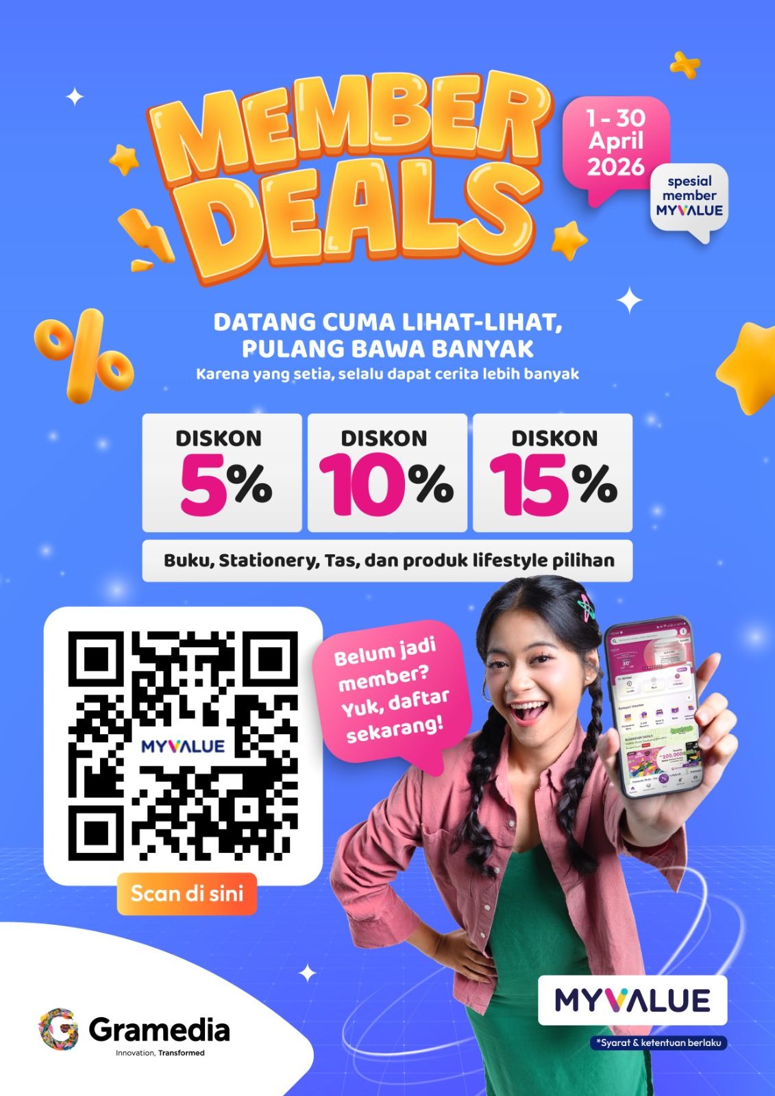 Tentu ada, dong! Selama periode 1-30 April 2026, Gramedia menghadirkan Member Deals, program khusus untuk member MyValue dengan berbagai keuntungan menarik!