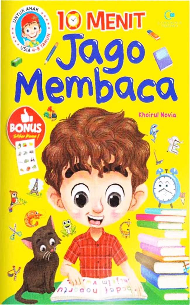 Buku 10 Menit Jago Membaca karya Khoirul Novia ini disusun dengan memerhatikan aspek-aspek perkembangan anak pada usia dini. Selain disajikan dengan gambar yang menarik, buku terbitan Citra Media pada tahun 2019 ini juga dirancang dengan memperkuat metode pengembangan membaca untuk anak usia dini, di antaranya pendekatan pengalaman bahasa, lihat dan katakan, juga metode pendukung konteks, dan aktivitas-aktivitas seru lainnya sebagai stimulus dalam belajar sambil bermain agar anak tidak mudah bosan.