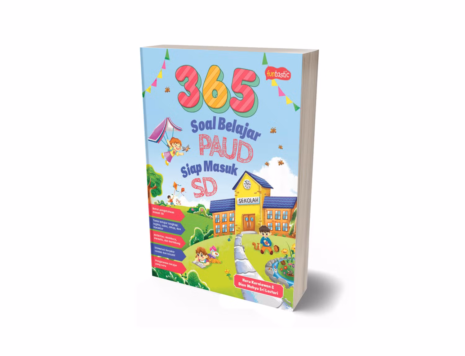 365 Soal Belajar PAUD Siap Masuk SD adalah buku istimewa yang harus dimiliki oleh anak-anak yang akan segera memasuki jenjang sekolah dasar. Buku ini akan membantu anak-anak untuk belajar dan berlatih pengetahuan yang diperlukan di sekolah dasar. Beragam tema belajar yang ada di jenjang sekolah dasar disajikan dalam aktivitas-aktivitas dan permainan yang menarik dan menyenangkan; mulai dari membaca, menulis, berhitung, logika, sains, sikap, dan karakter. Dengan mengerjakan seluruh soal yang ada, anak-anak akan dibekali pengetahuan penting untuk menjadi siswa sekolah dasar yang pintar dan cerdas.