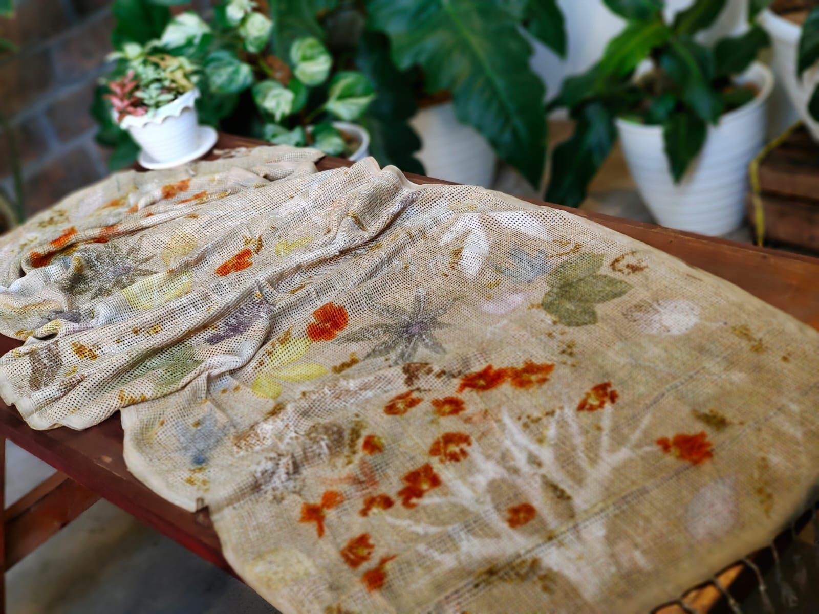 AECO 7 Syal Amaryllis Ecoprint motif daun