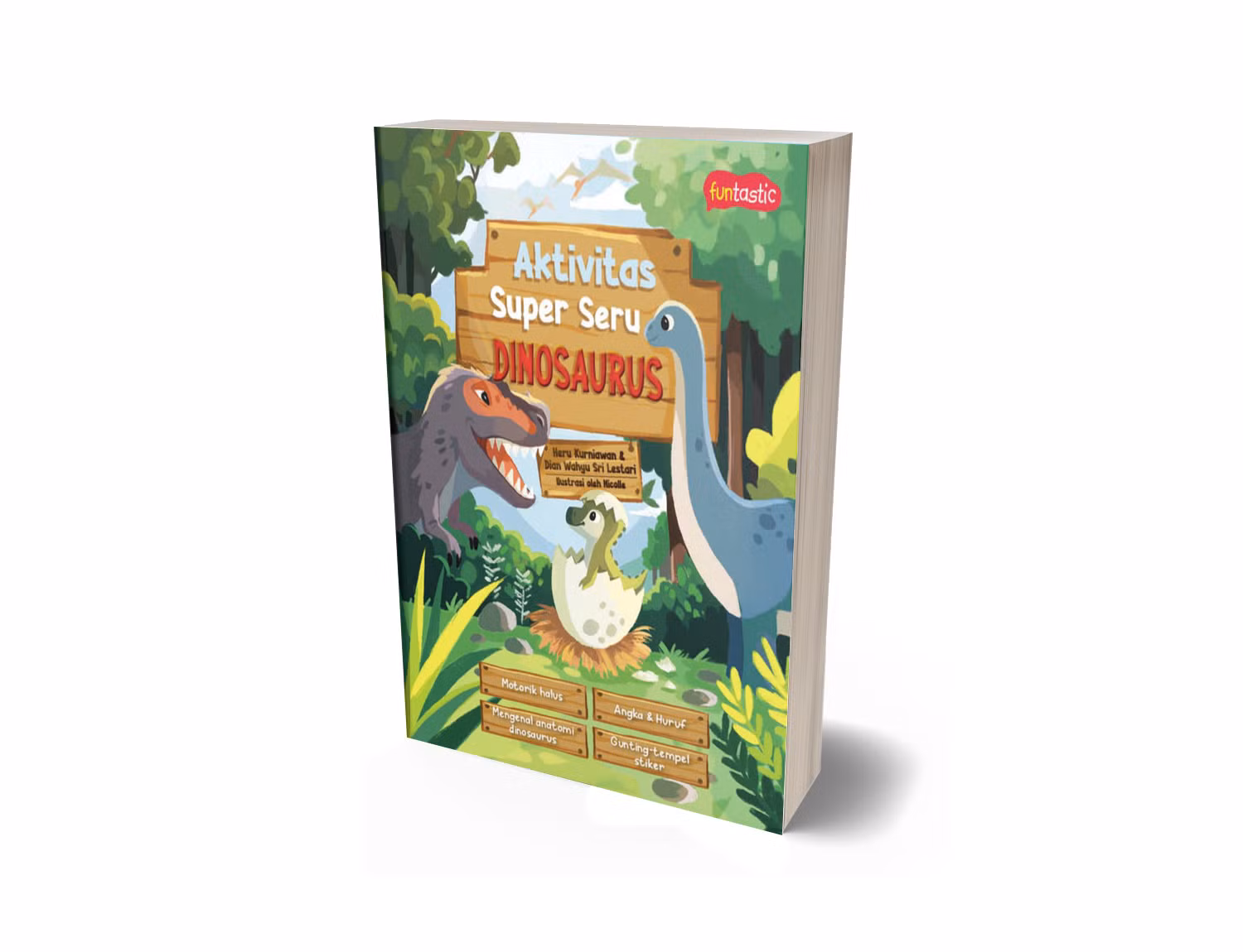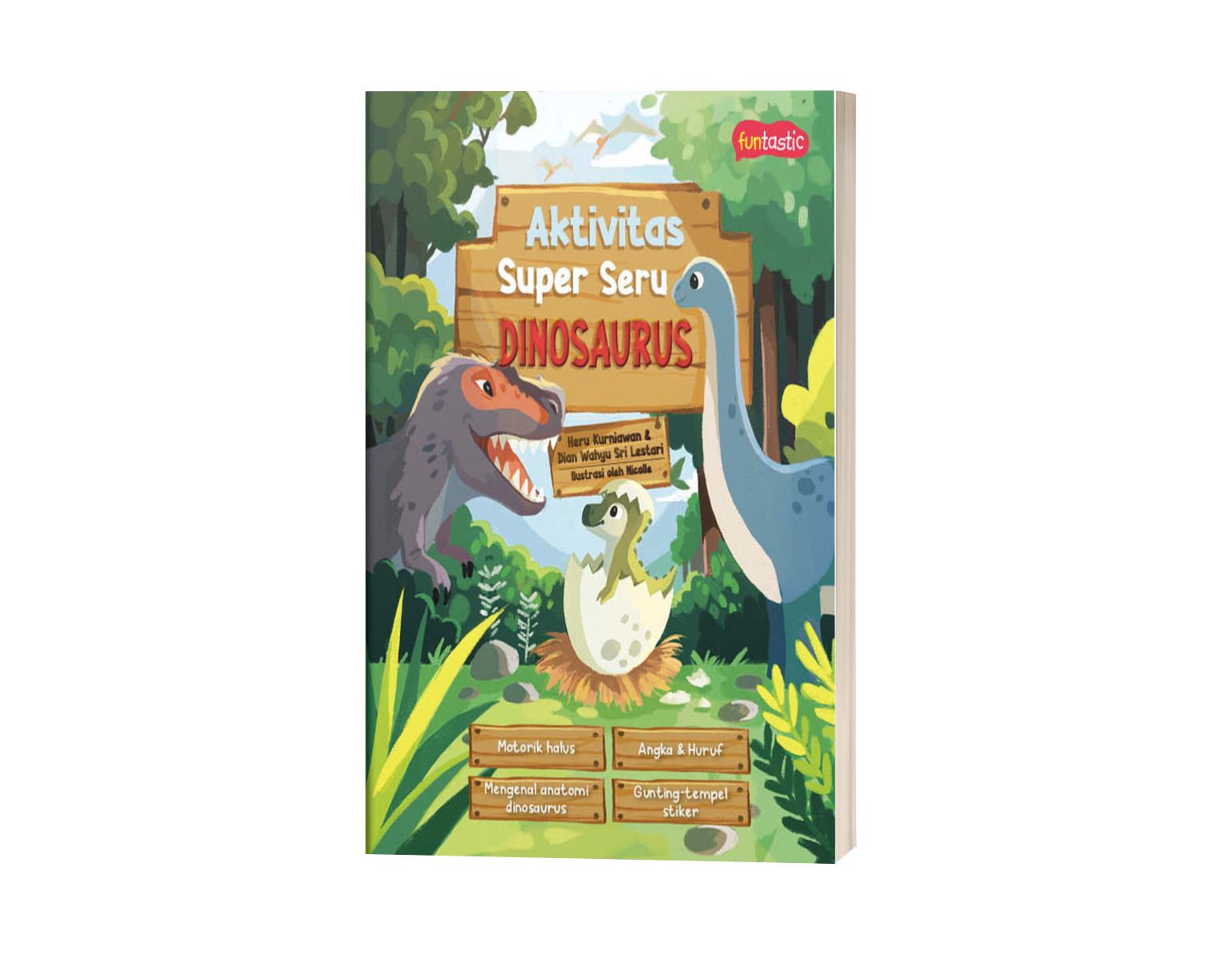 Aktivitas Super SeruDinosaurus ini mengajak anak-anak mengenal hewan yang menakjubkan. Anak-anak diajak bermain sambil mewarnai dinosaurus, belajar berhitung, mencocokkan gamabr, mengenal anatomi dinosaurus, menggunting-menempel stiker, dan lain-lain. Setiap aktivitas dirancang sesuai dengan usia PAUD yang bisa melatih motorik halus, kreativitas, serta mengasah kemampuan kognitif anak dengan cara menyenangkan. Anak juga jadi mengenal kehidupan para dinosaurus. Ayo, kita bertualang di hutan dinosaurus!
