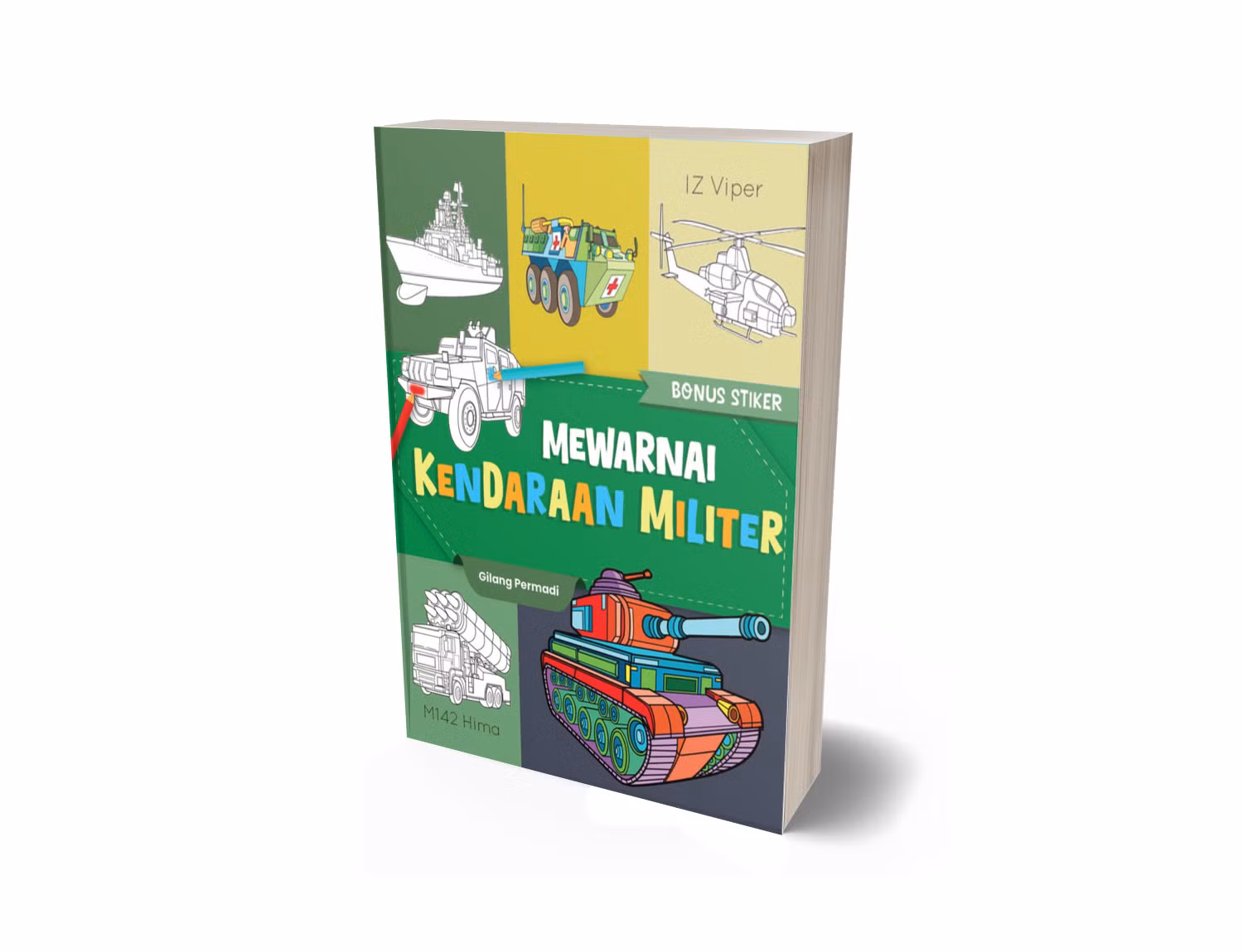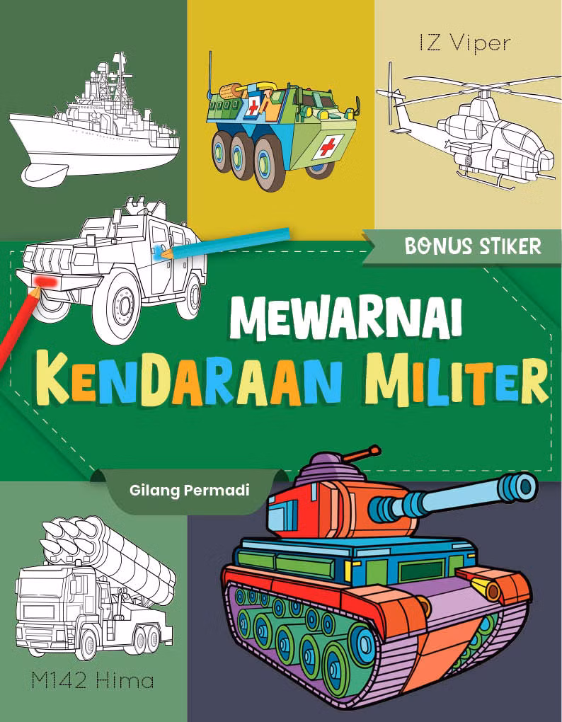 Motorik halus anak-anak harus diasah karena sangat berguna untuk melatih kekuatan dan kelenturan jari, pergelangan tangan, dan tangan. Ini akan membuat tangan mereka menjadi lebih terampil. Selain itu, bisa meningkatkan koordinasi mata dan tangan hingga kelak tulisan mereka lebih rapi. Temanya sangat menarik, yaitu kendaraan militer. Anak-anak jadi tahu jenis-jenis kendaraan militer. Ada stiker dan gunting tempel juga, lho. Seru!