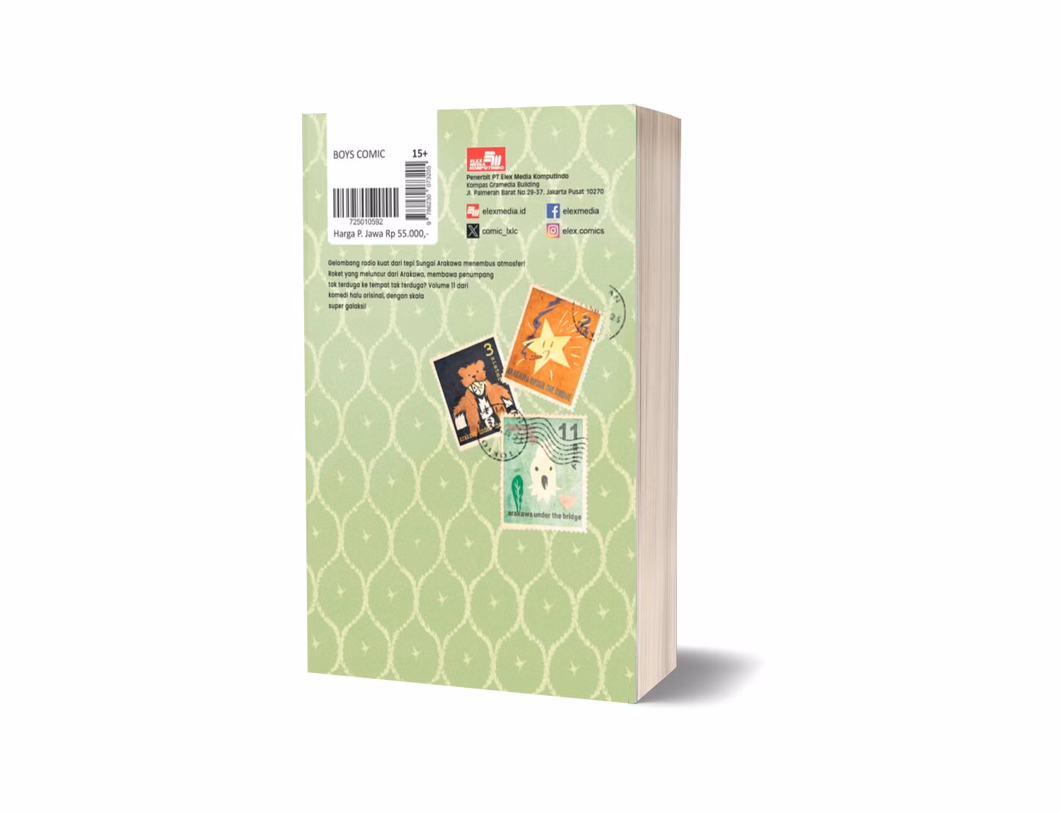 Gelombang radio kuat dari tepi Sungai Arakawa menembus atmosfer! Roket yang meluncur dari Arakawa, membawa penumpang tak terduga ke tempat tak terduga? Volume 11 dari komedi halu orisinal, dengan skala super galaksi!