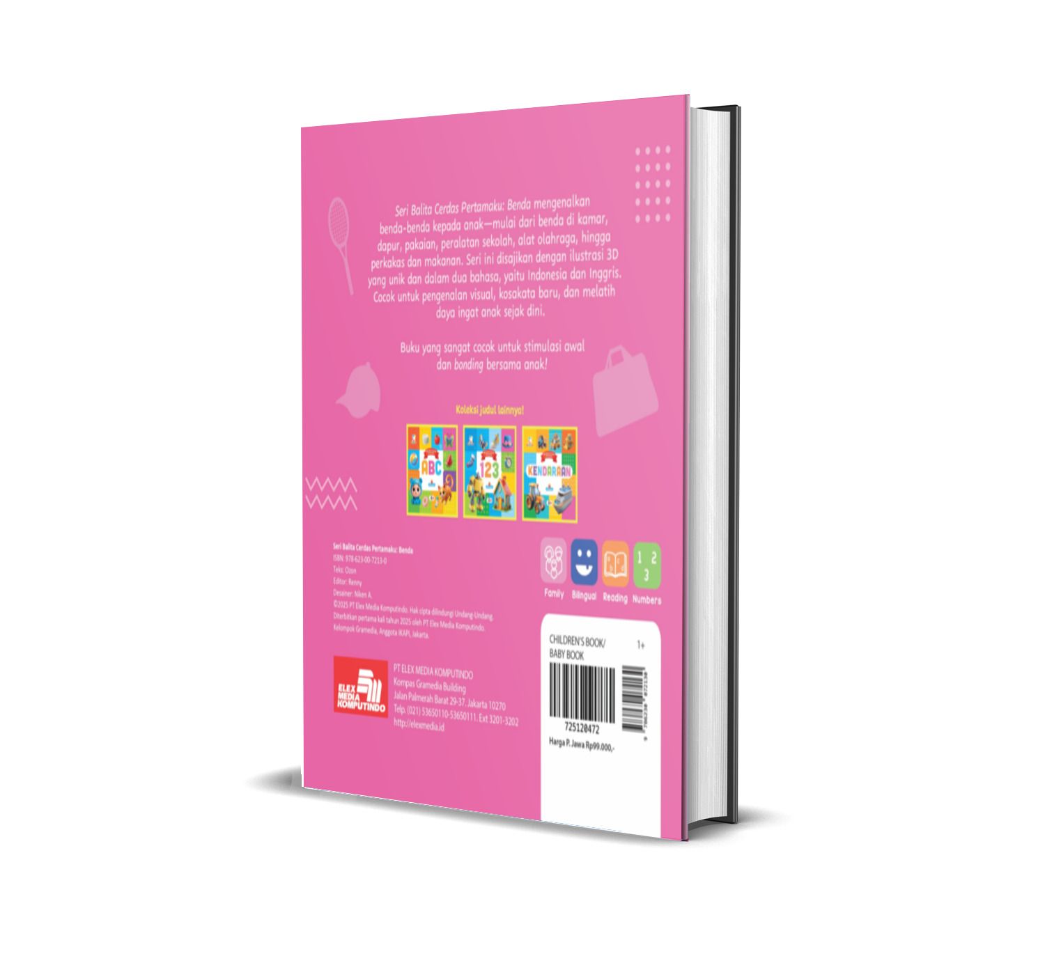 Seri Balita Cerdas Pertamaku: Benda mengenalkan benda-benda kepada anak—mulai dari benda di kamar, dapur, pakaian, peralatan sekolah, alat olahraga, hingga perkakas dan makanan. Seri ini disajikan dengan ilustrasi 3D yang unik dan dalam dua bahasa, yaitu Indonesia dan Inggris. Cocok untuk pengenalan visual, kosakata baru, dan melatih daya ingat anak sejak dini. Buku yang sangat cocok untuk stimulasi awal dan bonding bersama anak!