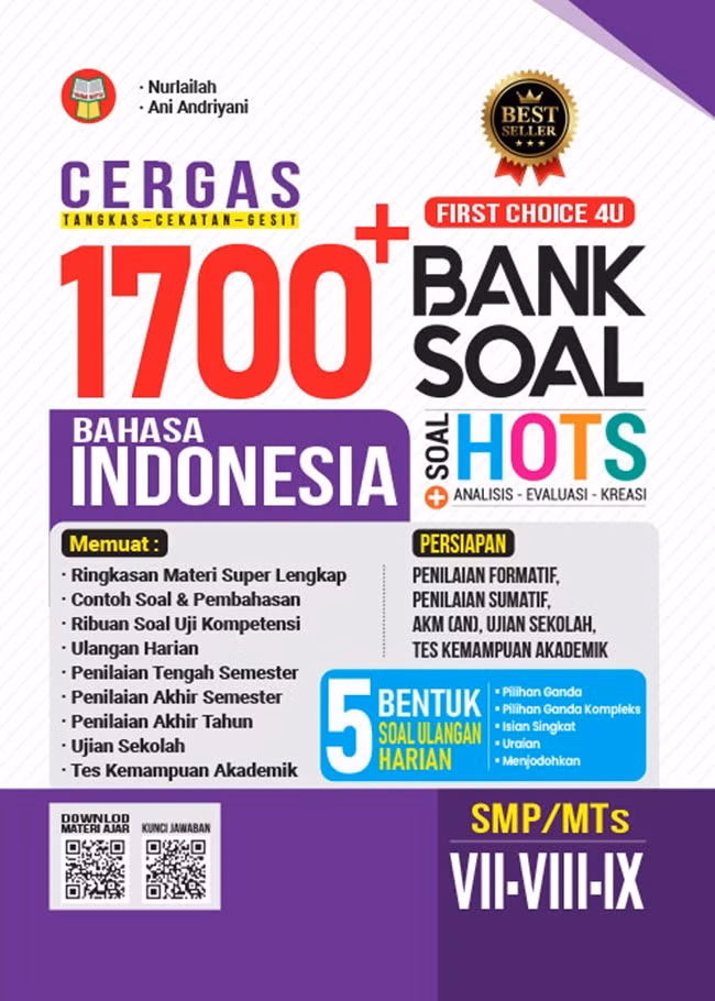 Practice makes perfect! Ayo berlatih bersama 1700 Plus Bank Soal: Cergas (Tangkas, Cekatan, dan Gesit) Bahasa Indonesia SMP/MTs untuk meraih impianmu!