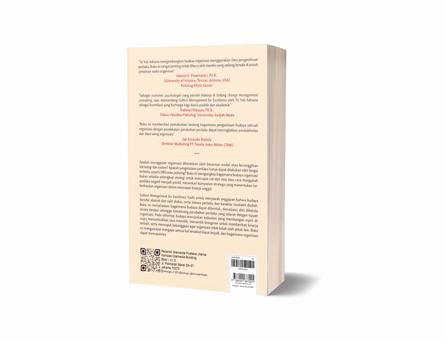 Apakah keunggulan organisasi ditentukan oleh besarnya modal atau kecanggihan teknologi dan sistem? Apakah pengelolaan perilaku hanya dapat dilakukan oleh fungsi tertentu, seperti HRD atau psikolog? Buku ini mengungkap bagaimana budaya organisasi bukan sekadar pelengkap strategi untuk mencapai visi dan misi atau cara mengubah perilaku negatif menjadi positif, melainkan komponen strategis yang menentukan keberhasilan organisasi dalam mencapai kinerja unggul.