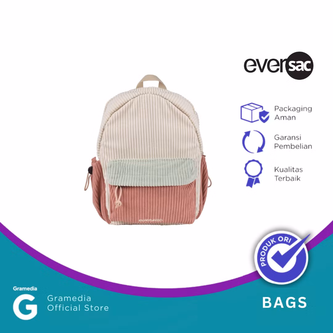 Koleksi tas Eversac Backpack Zig & Zag berbahan corduroy ini hadir dengan bahan lembut dan warna-warna full colour yang bikin outfit kamu makin standout! 🌈