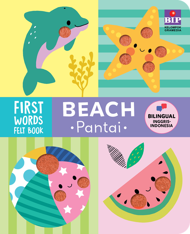 Buku ini berisi kosakata bilingual dan ilustrasi bergambar yang lucu. Dengan fitur touch-and-feel felt, buku ini memperkenalkan semua hal di pantai untuk mengembangkan keterampilan berbahasa si kecil.