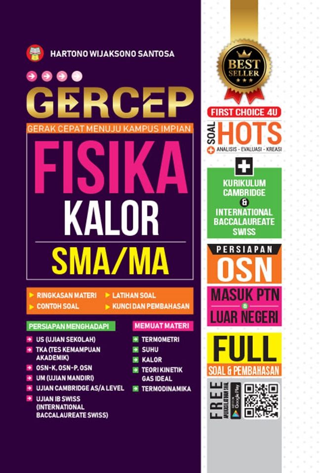 Buku Gercep (Gerak Cepat Menuju Kampus Impian) Fisika-Kalor SMA/MA ini merupakan seri kedua dari buku Bank Soal Fisika untuk SMA/MA yang terdiri atas beberapa buku, yaitu Bank Soal Fisika Mekanika, Bank Soal Fisika Kalor, dan Bank Soal Fisika Optika.