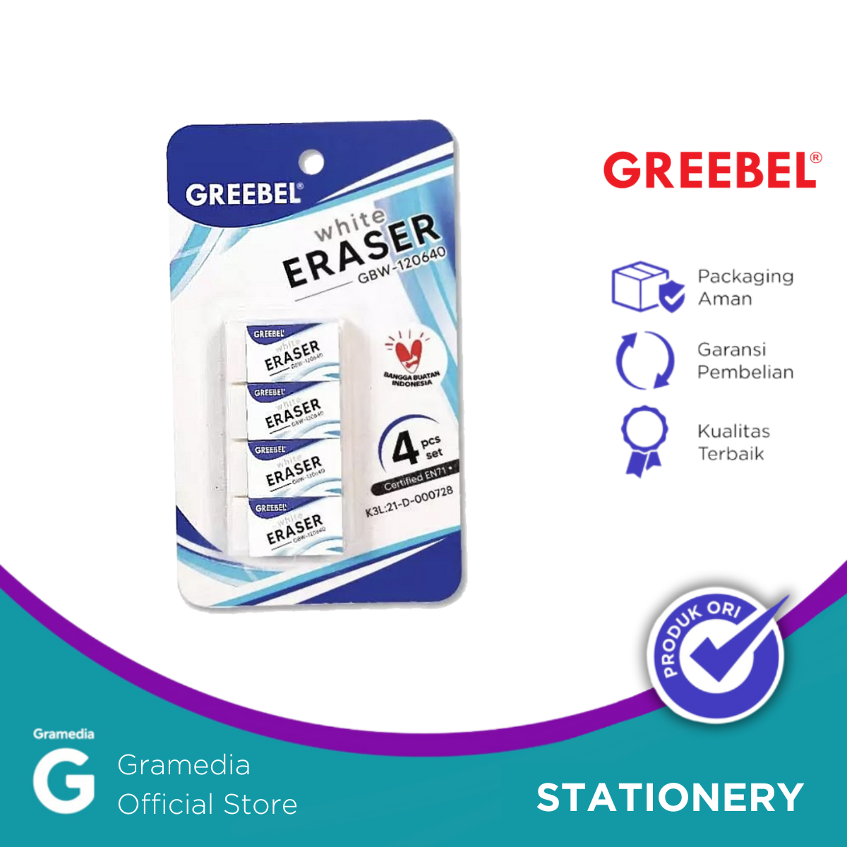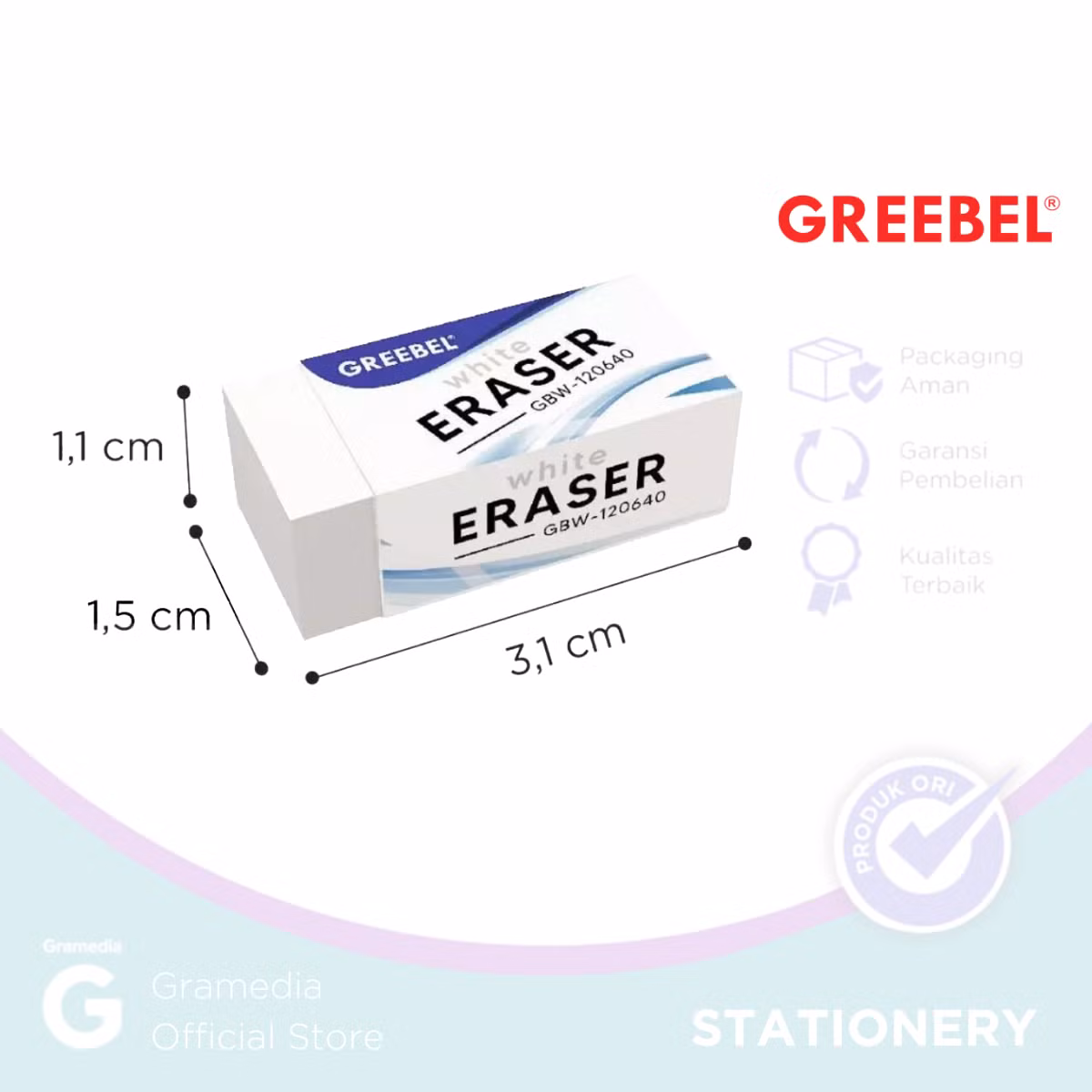 1. Bersih dan Efektif Menghapus: Penghapus pensil Greebel mampu menghapus goresan pensil dengan bersih tanpa meninggalkan bekas. Sangat cocok untuk kebutuhan menulis dan menggambar.