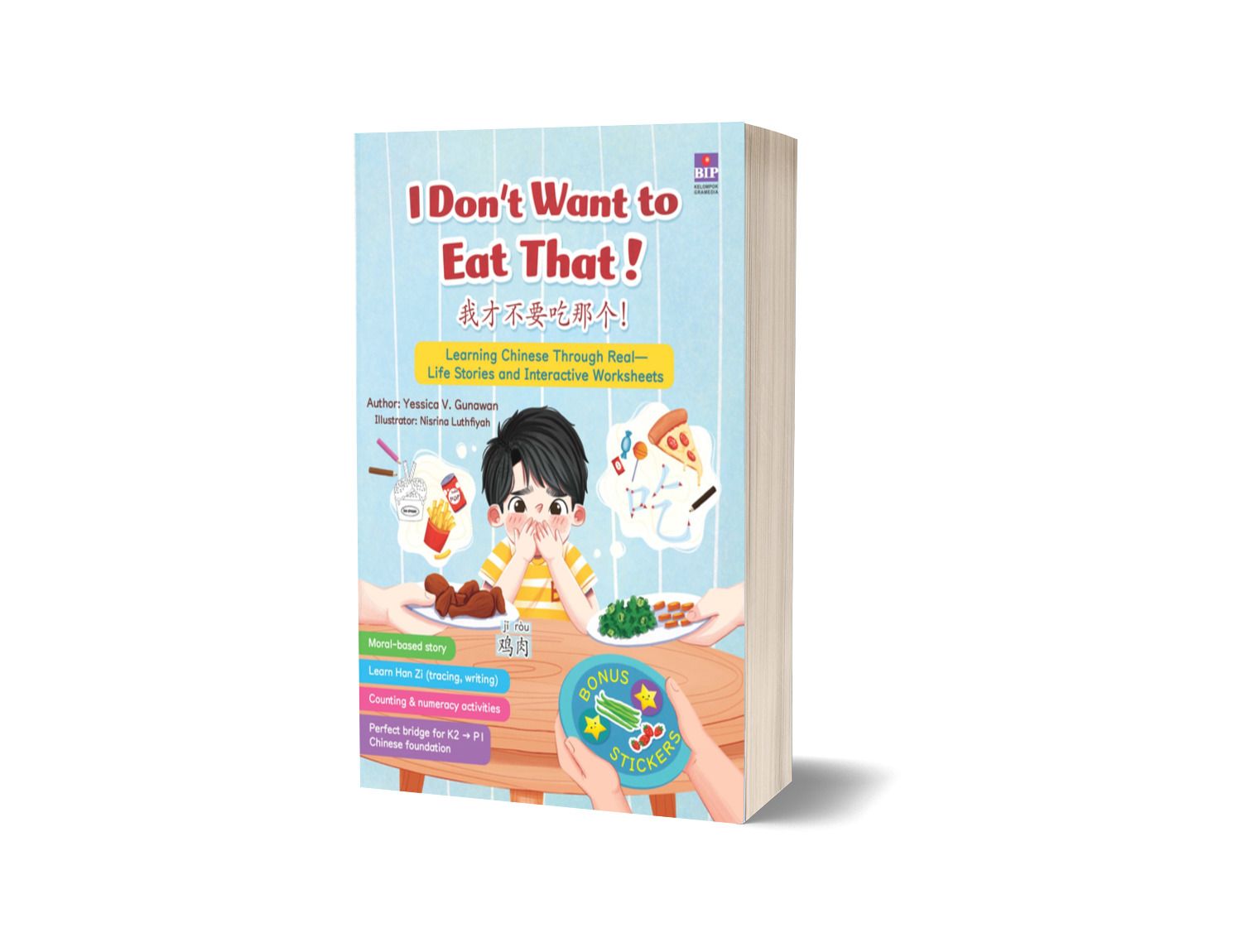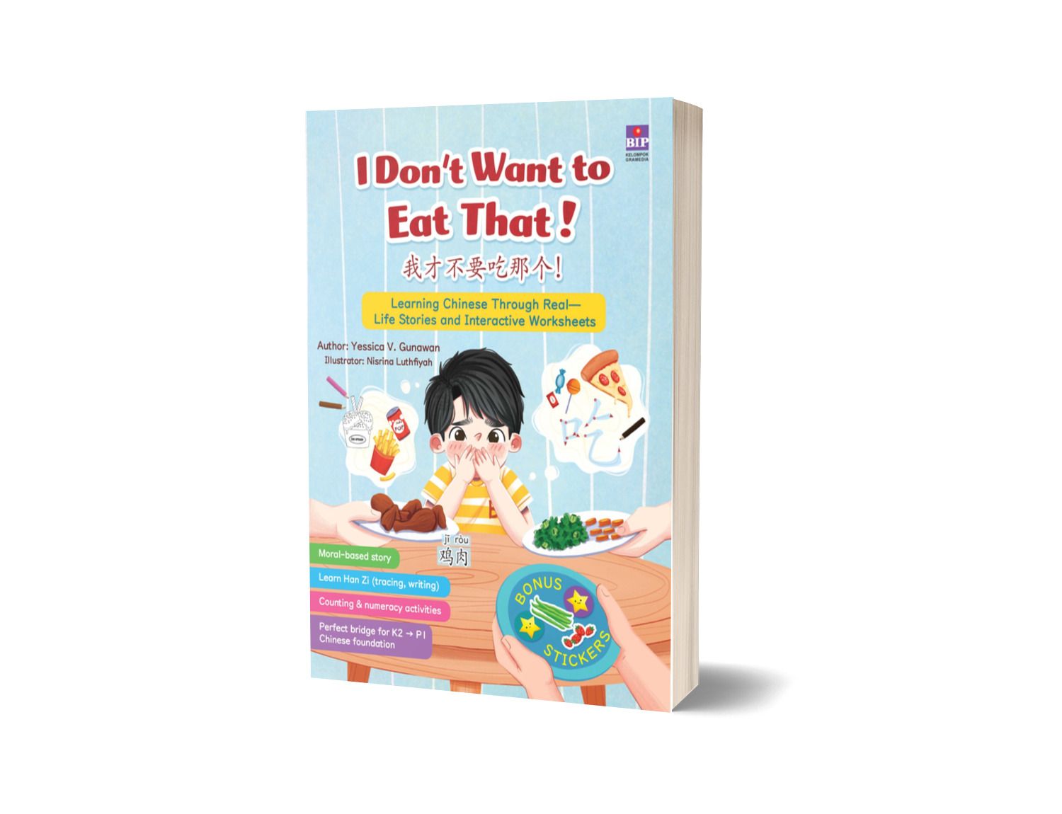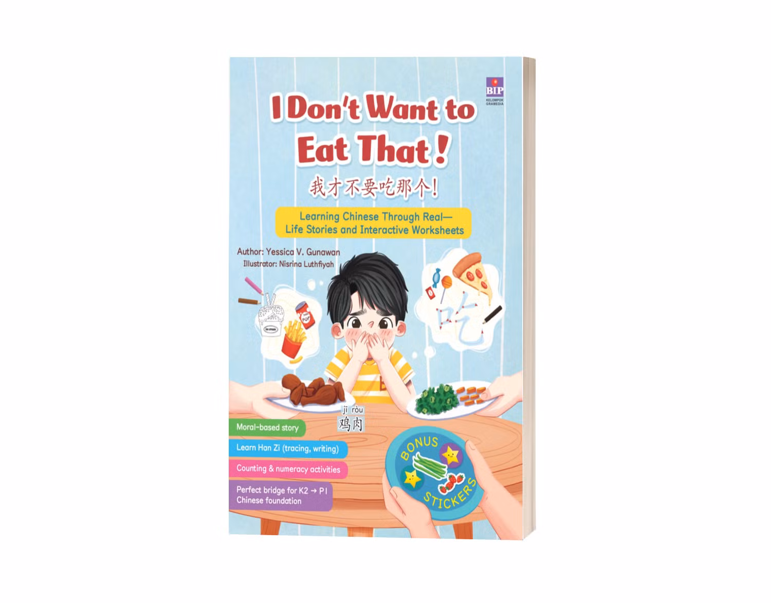 In this book, you will find a fun story filled with engaging activities, such as learning Mandarin letters, simple counting, recognizing emotions, and sticker activities.