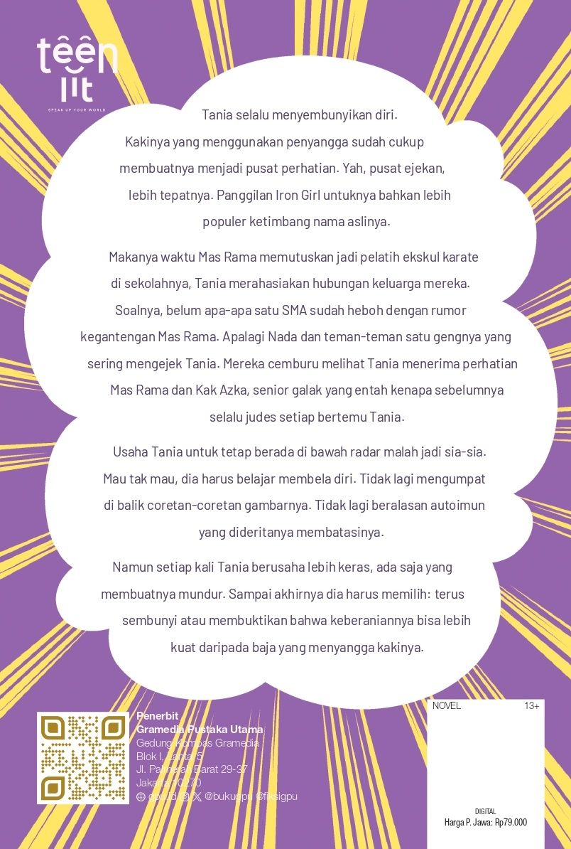 Tania selalu menyembunyikan diri. Kakinya yang menggunakan penyangga sudah cukup membuatnya menjadi pusat perhatian. Yah, pusat ejekan, lebih tepatnya. Makanya waktu Mas Rama memutuskan jadi pelatih ekskul karate di sekolahnya, Tania merahasiakan hubungan keluarga mereka. Soalnya, belum apa-apa satu SMA sudah heboh dengan rumor kegantengan Mas Rama. Apalagi Nada dan teman-teman satu gengnya yang sering mengejek Tania. Mereka cemburu melihat Tania menerima perhatian Mas Rama dan Kak Azka, senior galak yang entah kenapa sebelummnya selalu judes setiap bertemu Tania.