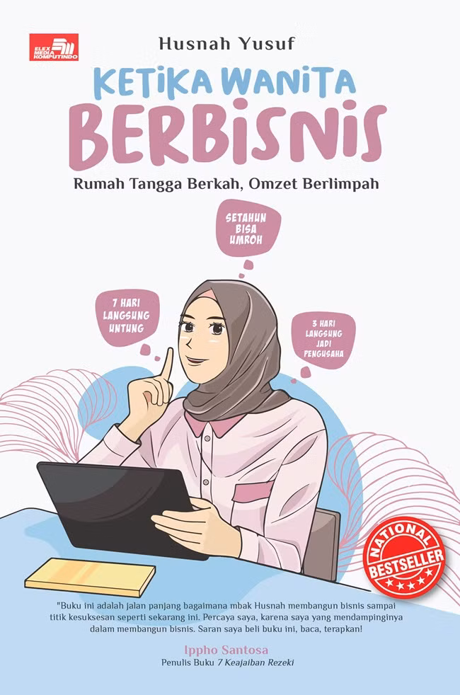 KETIKA WANITA BERBISNIS Coba perhatikan ini: • Banyak wanita yang mengeluh uang kurang, bingung tentang masa depan. • Banyak wanita yang bingung kerja di luar sana, tapi hati dan pikiran ada di rumah karena meninggalkan si buah hati. • Banyak wanita yang ingin bantu suami, tapi bingung caranya gimana. • Banyak wanita yang bangun bisnis karena ingin lebih fleksibel bersama keluarga, tapi malah kesibukannya semakin menggila. • Banyak wanita yang mengeluh ingin ibadah, tapi uang bahkan untuk dapur saja masih terengah-engah. Jika permasalahan di atas salah satunya ada pada diri Anda, maka buku ini cocok untuk Anda. Buku ini membahas banyak hal. • Dari mulai bagaimana cara membangun bisnis dari rumah, sampai ke membangun keluarga biar berkah. • Dari mulai bagaimana "menabung" dengan cerdas, sampai membangun bisnis dengan omzet yang semakin melaju deras. • Dari mulai membahagiakan anak dengan serius, sampai dengan membangun cinta dengan pasangan pakai hati yang tulus. • Dari mulai mengurai masalah kerja dengan cerdas, sampai dengan memecahkan solusi bisnis dengan ukuran yang pas.