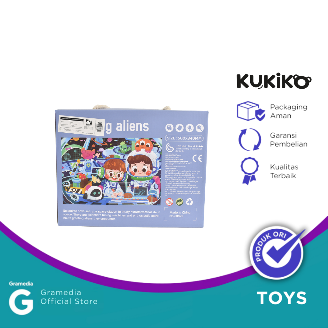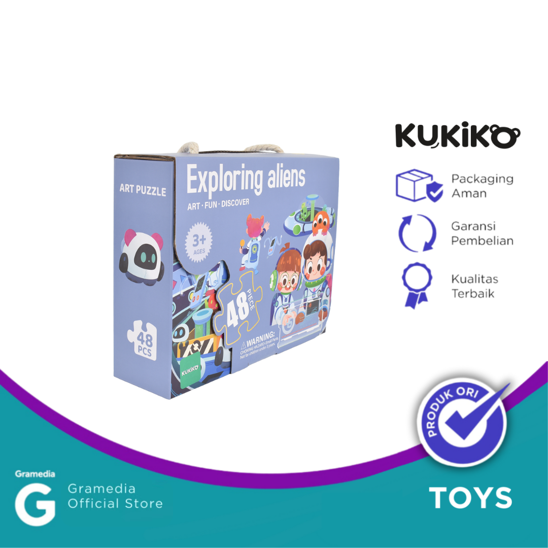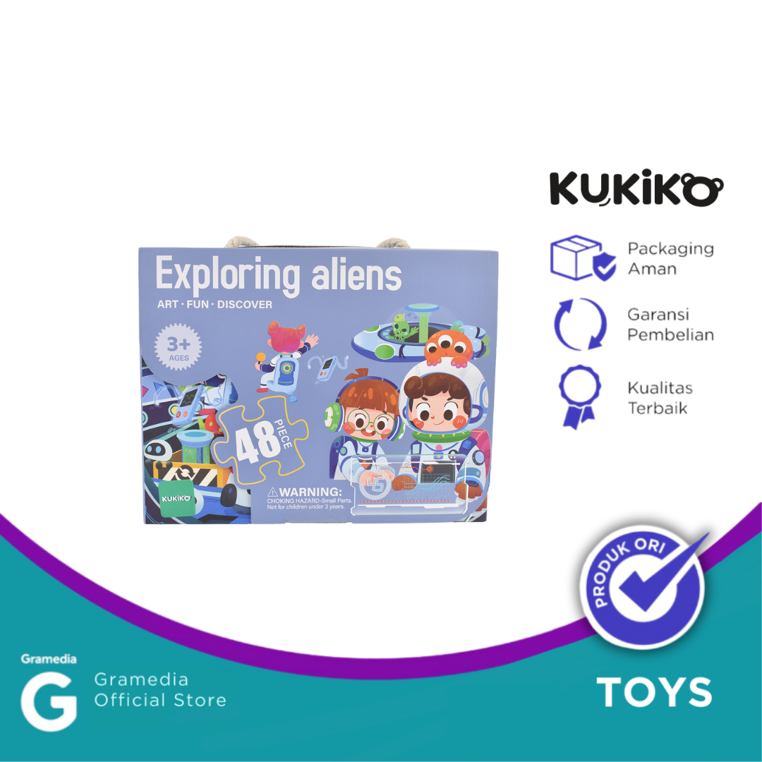 KUKIKO EXPLORE ALIENS PUZZLES 88622 berisi 48 pcs puzzle dengan ilustrasi dunia alien yang penuh warna dan imajinasi. Cocok untuk mengasah kreativitas dan konsentrasi anak sambil membawa mereka dalam petualangan seru di galaksi jauh.
