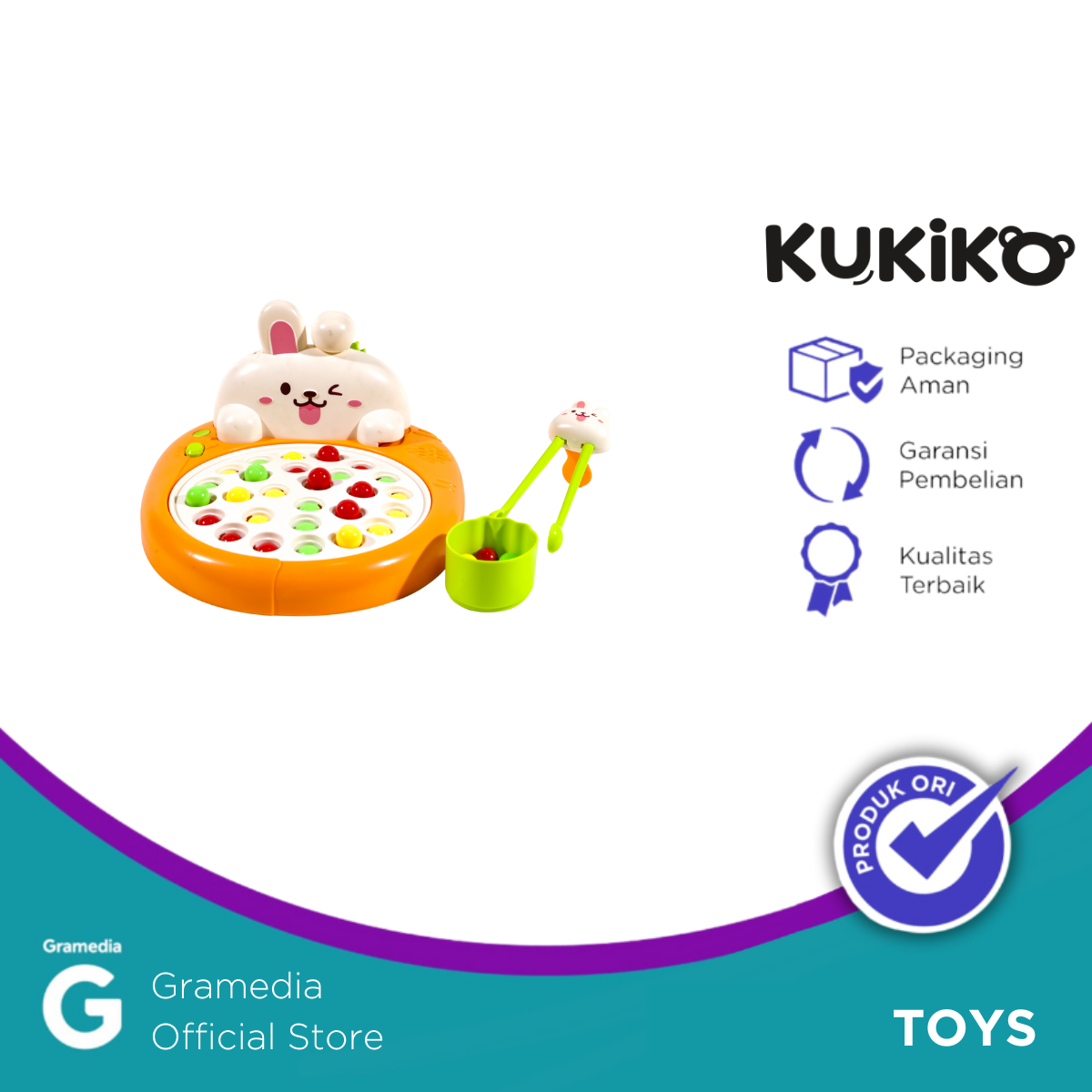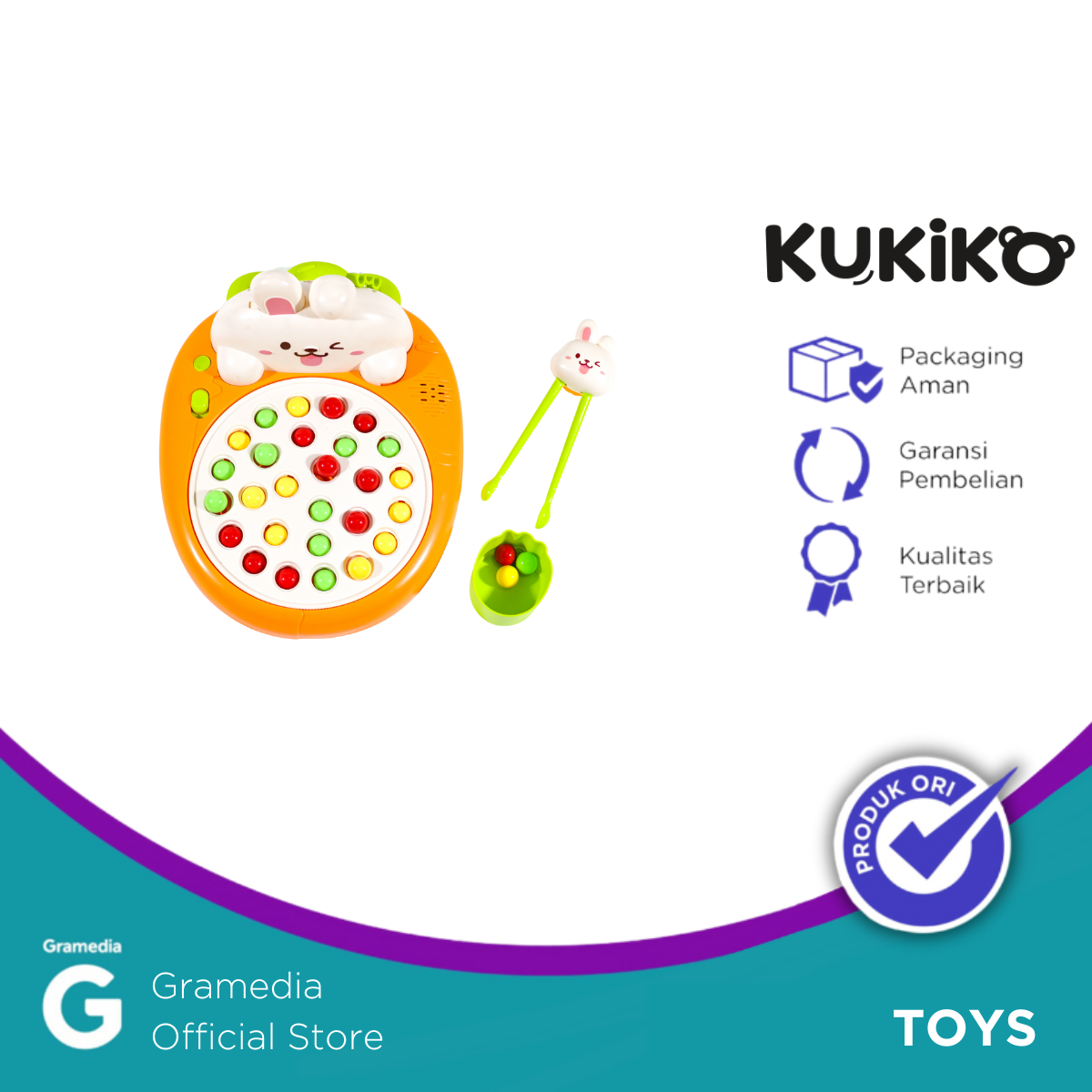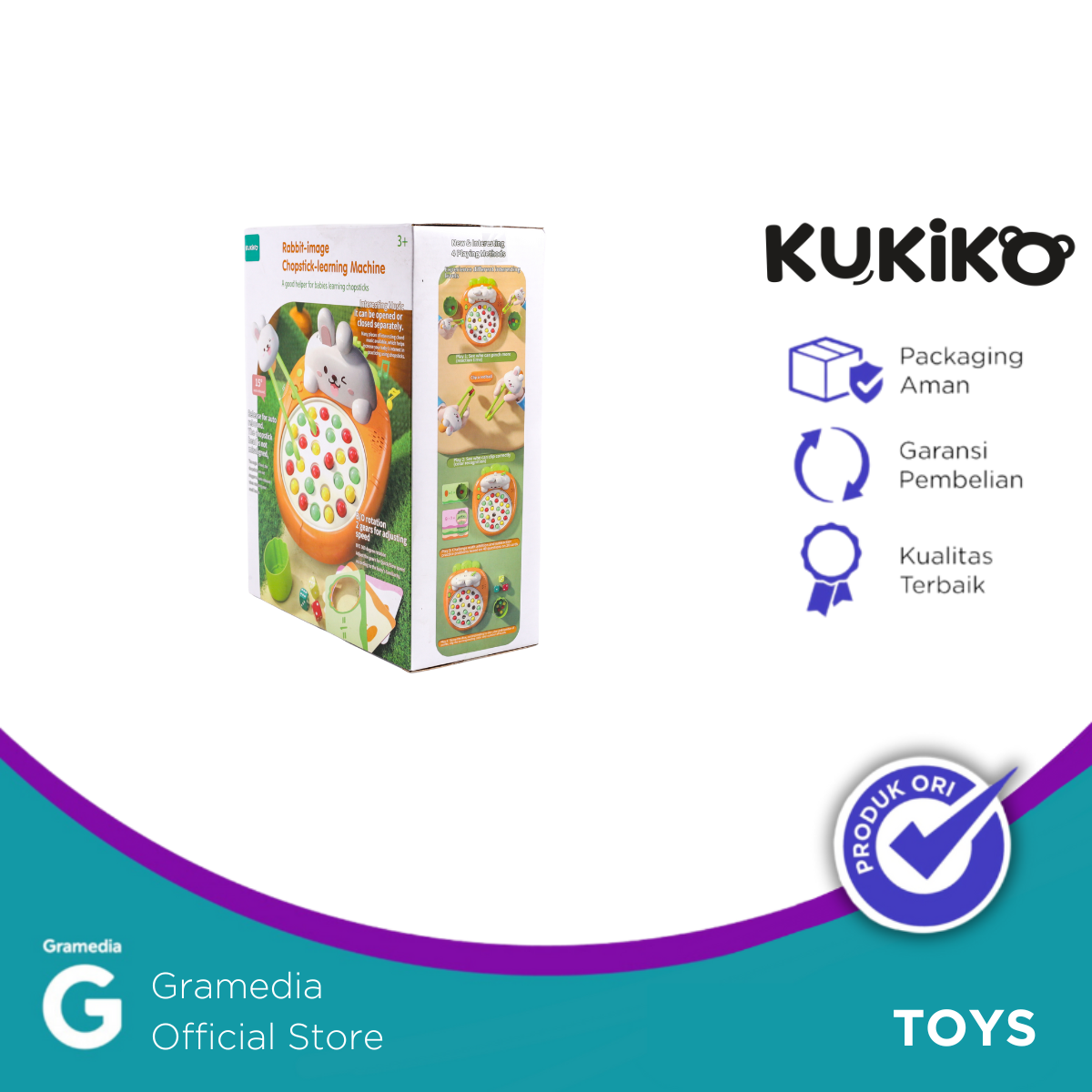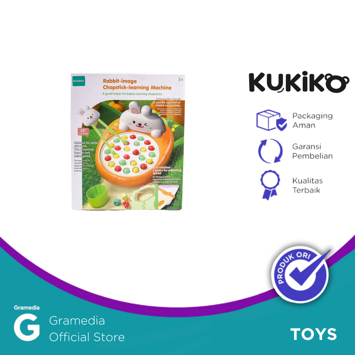 KUKIKO Rabbit Chopsticks Practice with Music L256 adalah alat bantu belajar menggunakan sumpit yang dirancang khusus untuk anak-anak. Dilengkapi dengan karakter kelinci lucu (rabbit) di bagian atas dan fitur musik interaktif, produk ini membuat proses belajar makan menjadi lebih menyenangkan dan menarik.