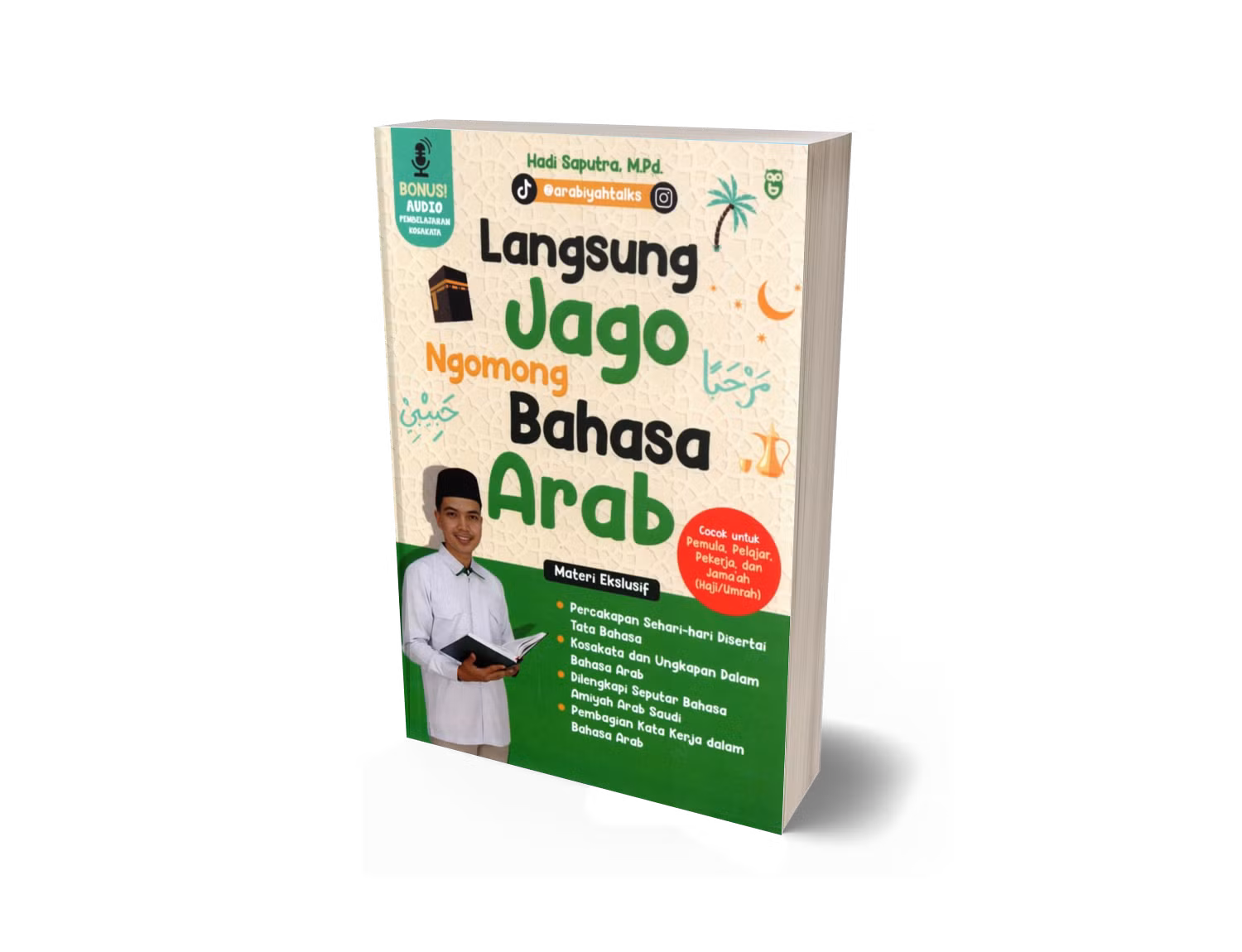 Dirancang khusus buat kamu yang ingin langsung praktik ngomong, buku ini memadukan materi ringan dengan pendekatan yang aplikatif dan relevan untuk kehidupan sehari-hari. Di dalamnya, kamu akan menemukan percakapan sehari-hari lengkap dengan tata bahasa, kosakata tematik dan ungkapan umum, pembagian kata kerja, hingga bahasa Arab Amiyah (logat Saudi) yang sering digunakan dalam interaksi langsung. Sangat cocok untuk pemula, pelajar, santri, mahasiswa, pekerja, atau siapa pun yang ingin meningkatkan kemampuan berbicara bahasa Arab dengan cara yang praktis dan menyenangkan.