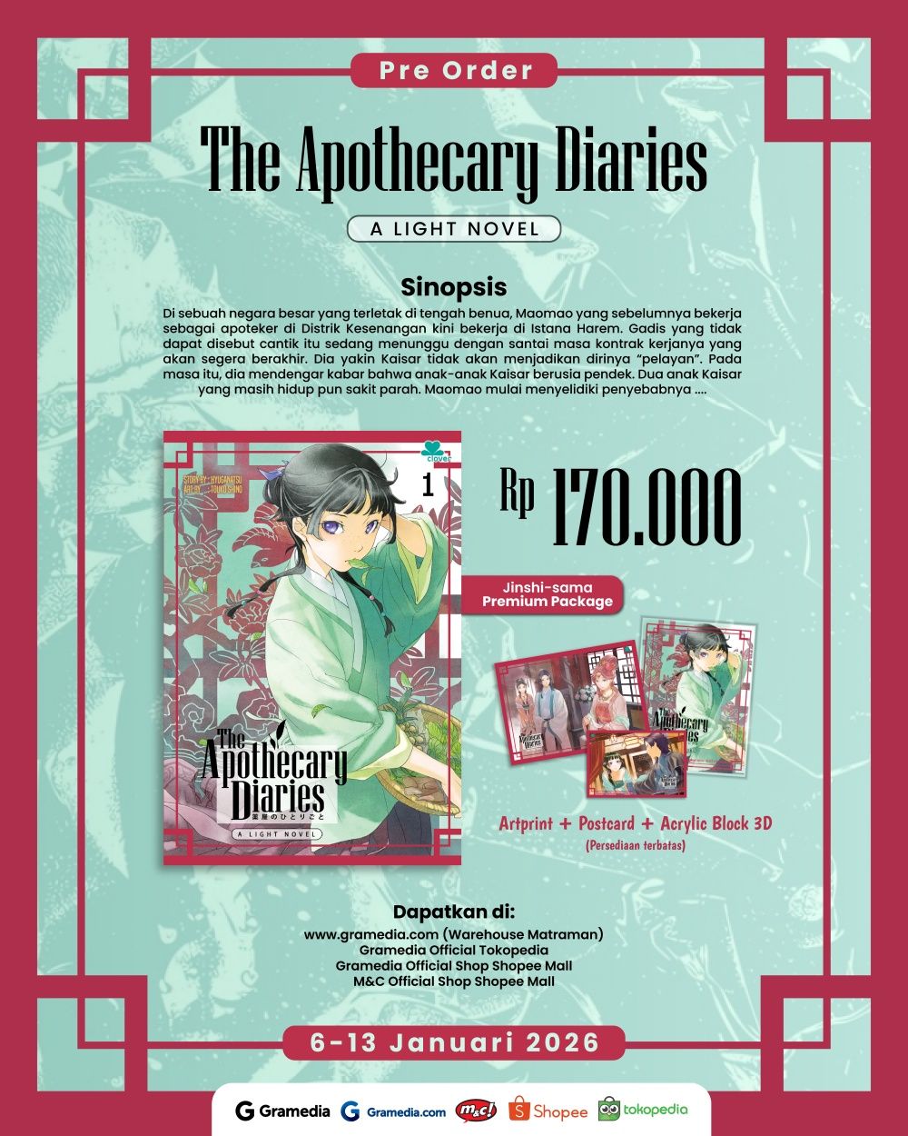 Light Novel: The Apothecary Diaries Vol. 01 - Jishi Sama, Premium Package:
