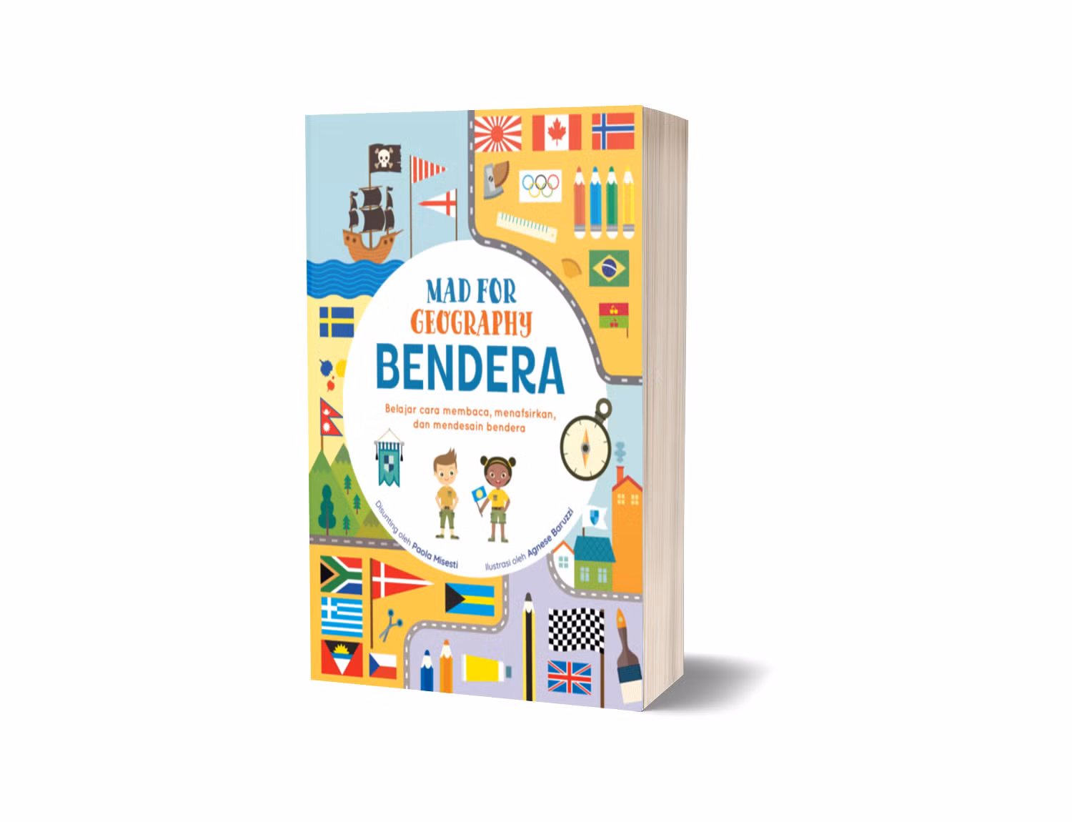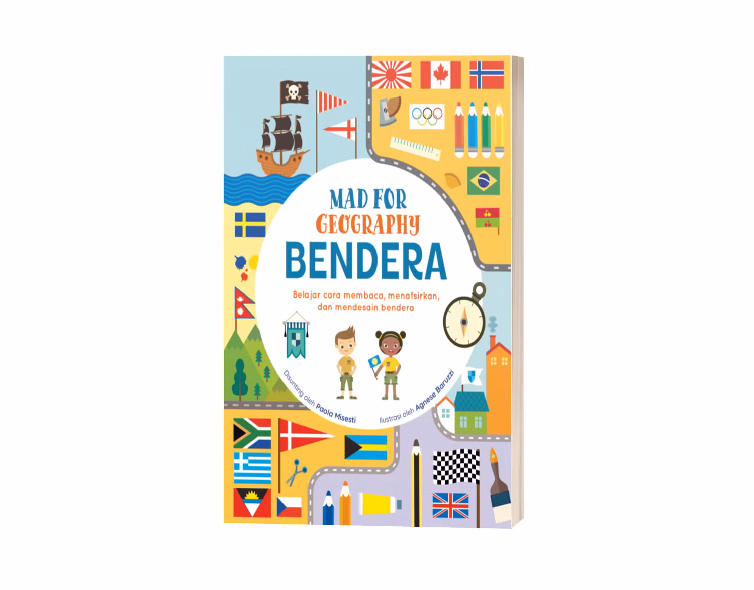 Jelajahi dunia tempat kita tinggal, dengan geografi! Buku ini akan mengajarkan anak-anak rahasia dan prinsip dalam mendesain BENDERA. Mereka akan menemukan banyak fakta menarik tentang bendera, mempelajari ciri-ciriya serta kesalahan-kesalahan yang harus dihindari, dan di akhir buku, mereka akan mampu mendesain bendera mereka sendiri!