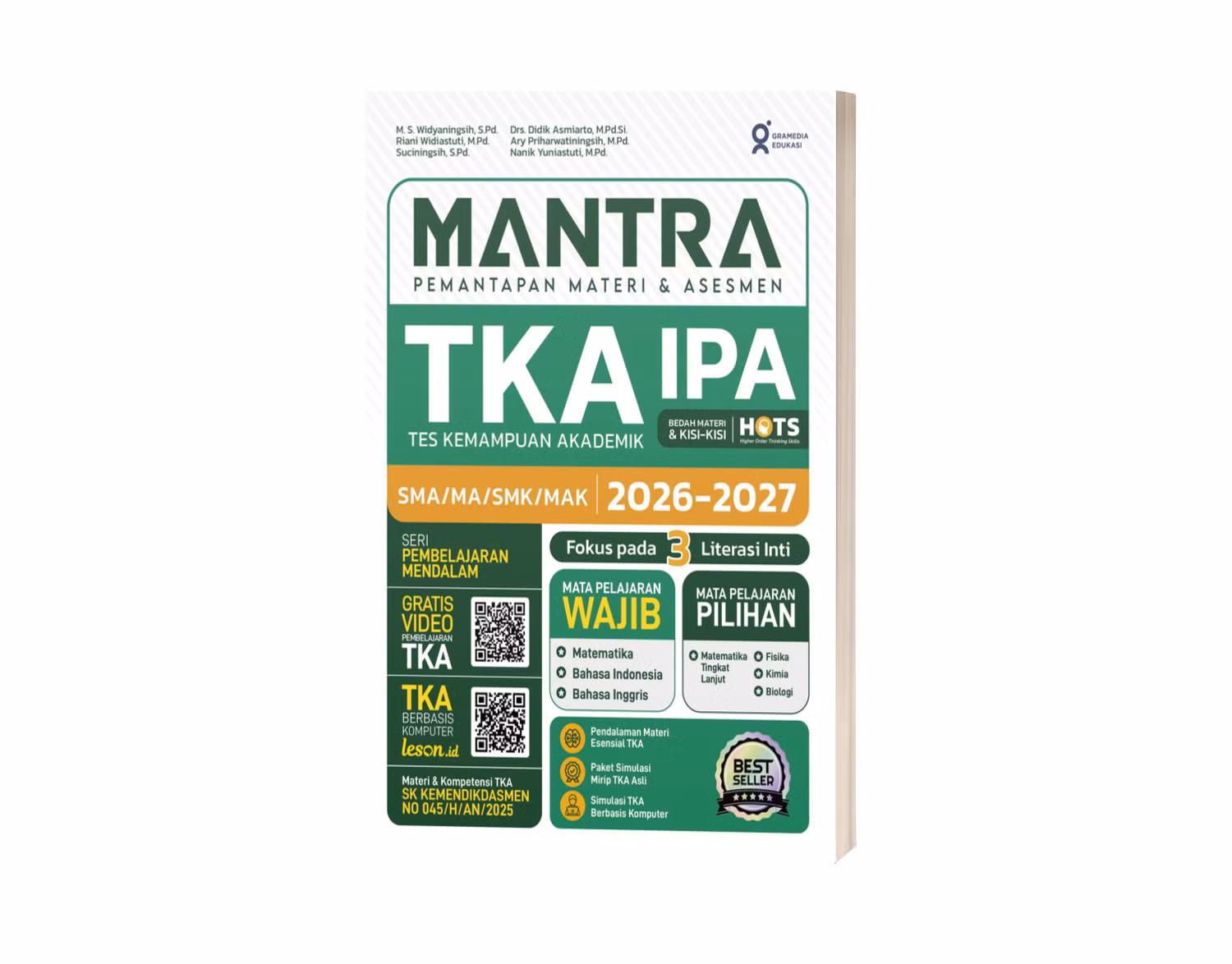 Buku Mantra TKA IPA SMA/MA/SMK/MAK 2026-2027 adalah panduan super lengkap yang dirancang khusus untuk membekali siswa menghadapi asesmen dengan optimal. Disusun secara sistematis, buku ini menjadi bekal terbaik untuk menguasai materi dan strategi menaklukkan soal-soal TKA.