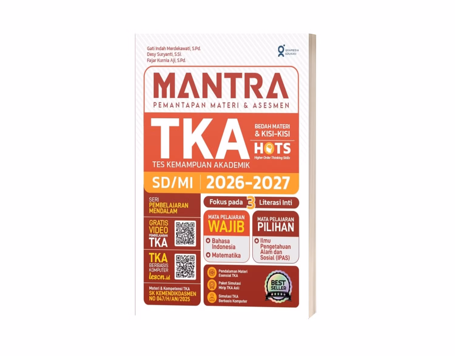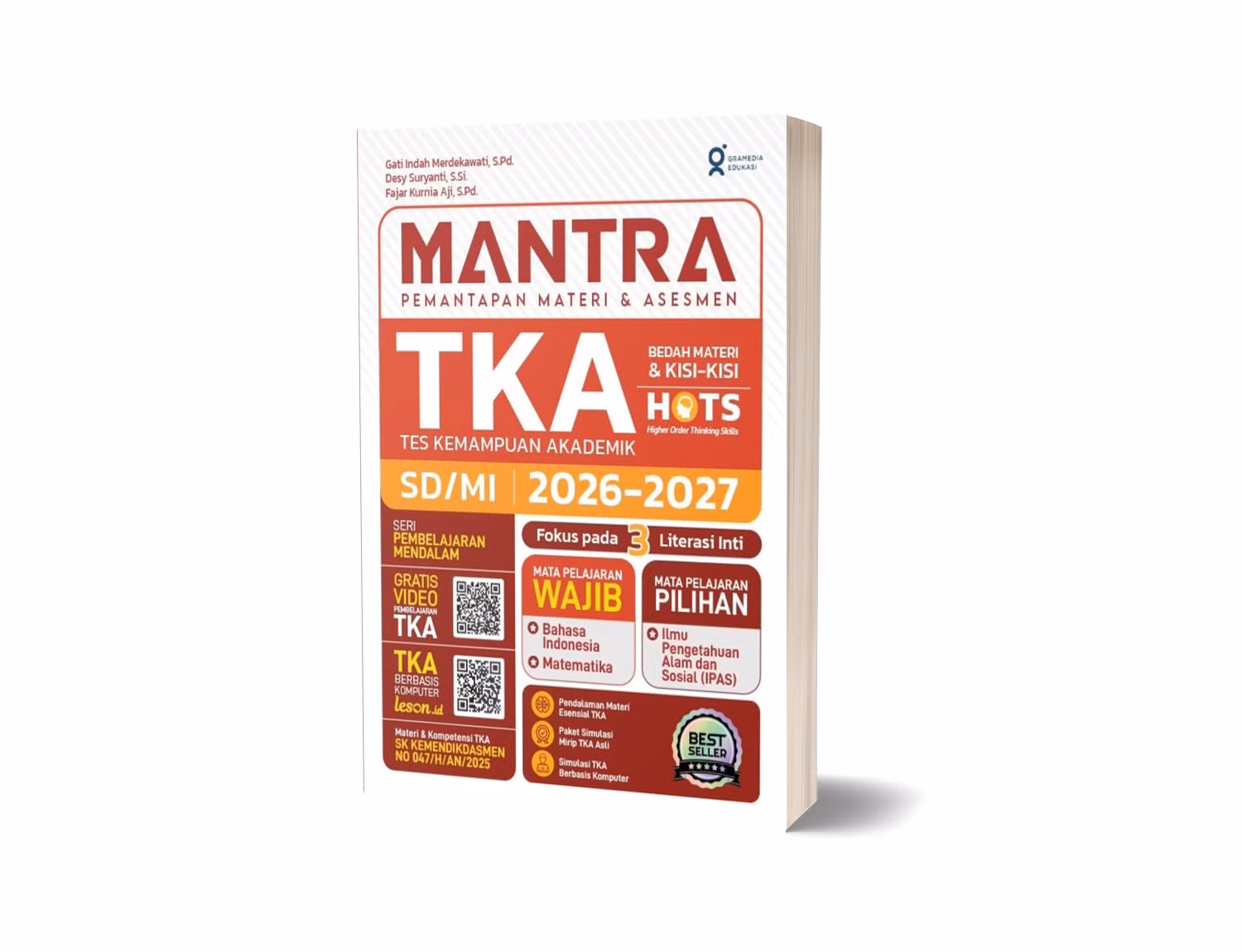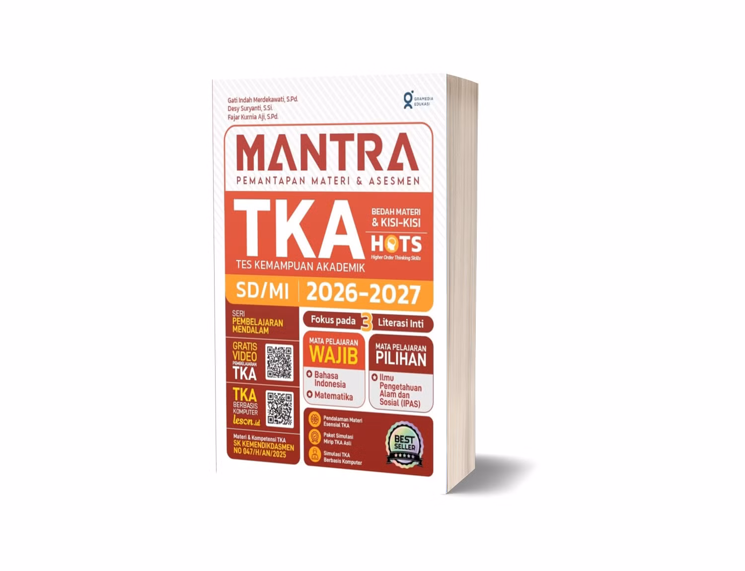 Buku Mantra TKA SD/MI 2026-2027 adalah panduan super lengkap yang dirancang khusus untuk membekali siswa menghadapi asesmen dengan optimal. Disusun secara sistematis, buku ini menjadi bekal terbaik untuk menguasai materi dan strategi menaklukkan soal-soal TKA.