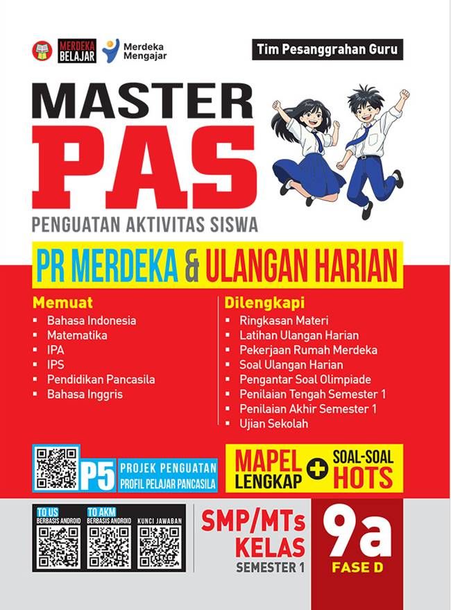 Buku “MASTER PAS (Penguatan Aktivitas Siswa) PR MERDEKA & ULANGAN HARIAN untuk SMP/MTs Kelas 9a Fase D Semester 1” ini dirancang khusus untuk membantu siswa mempersiapkan diri lebih dini menghadapi ulangan harian dengan berlatih mengerjakan soal. Sesuai dengan judul bukunya, di dalam buku ini memuat dua rubrik soal, yaitu Latihan Ulangan Harian dan Pekerjaan Rumah.