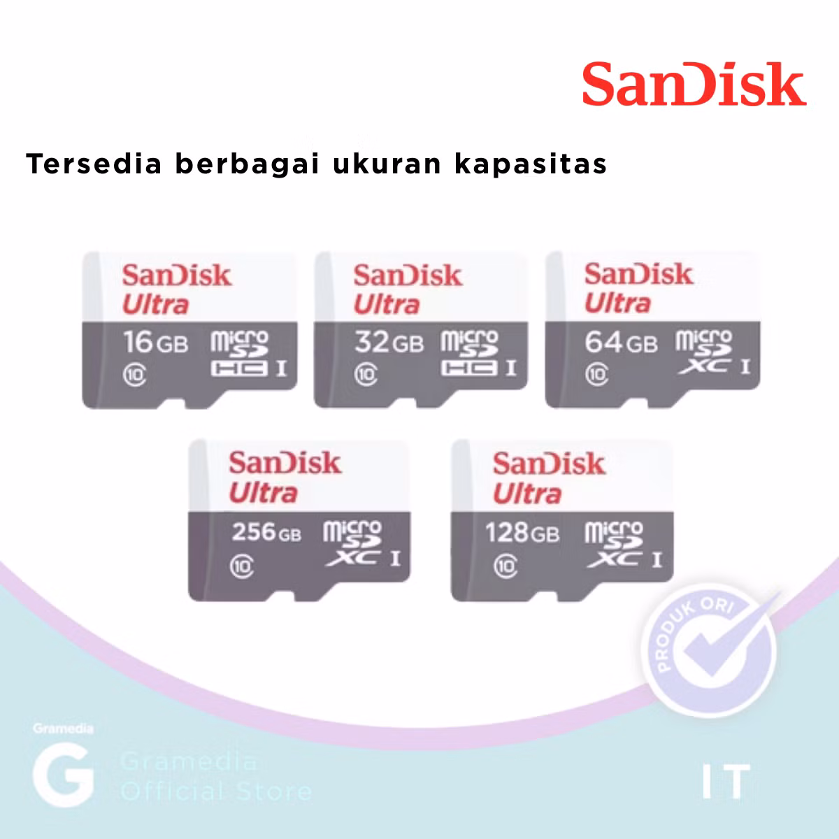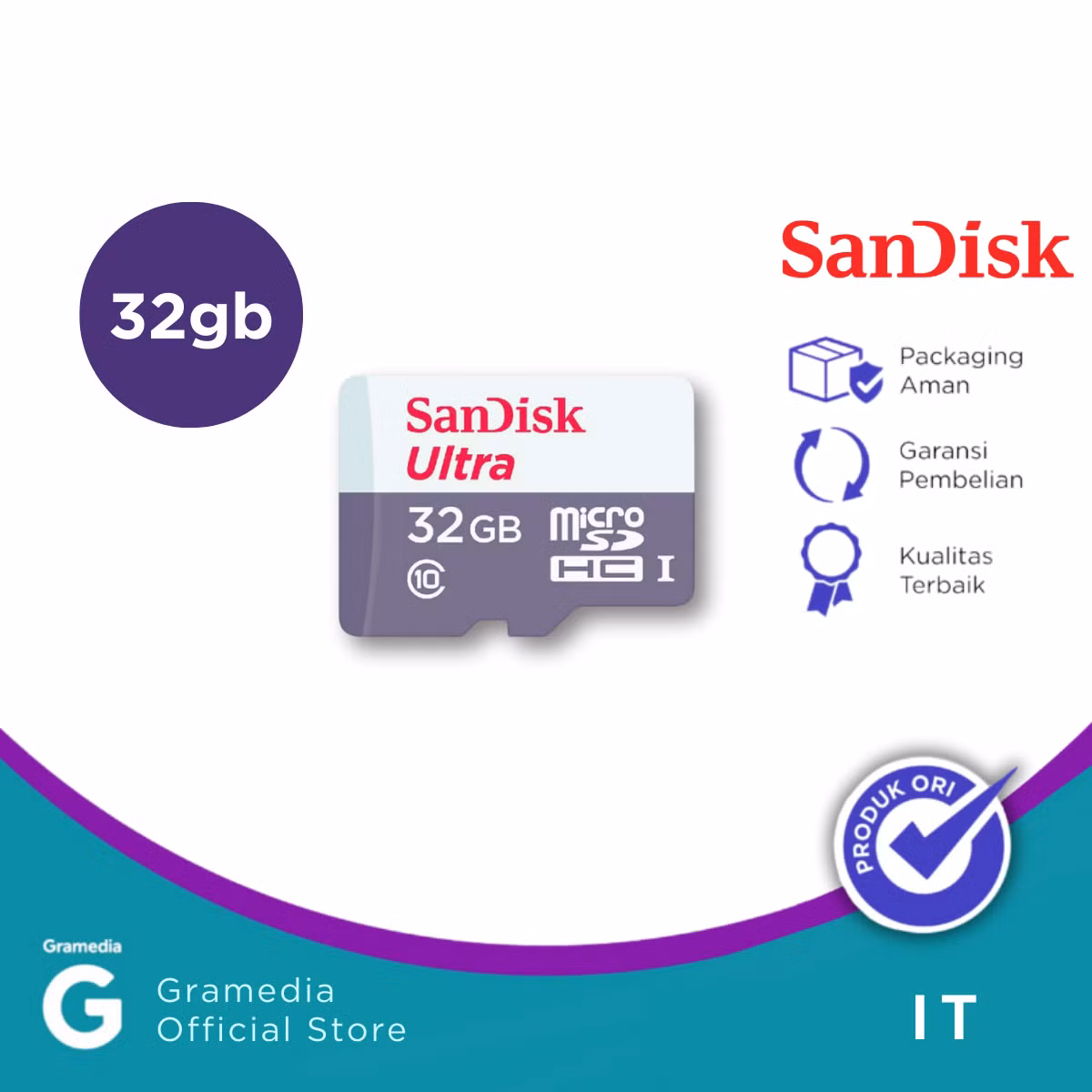 SanDisk Ultra microSDHC 32GB adalah kartu memori berkecepatan tinggi dengan rating Class 10 dan UHS-1, cocok untuk menyimpan foto, video Full HD, dan aplikasi dengan cepat dan stabil. Ideal untuk smartphone, tablet, dan kamera.