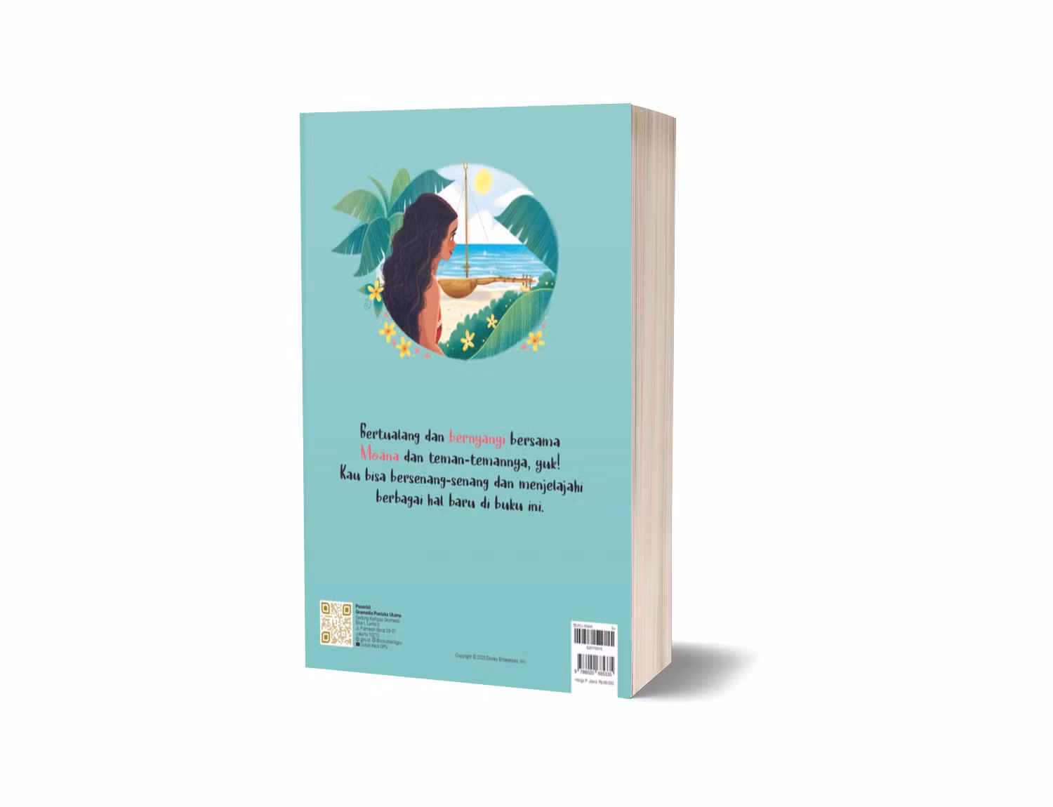 Bertualang dan bernyanyi bersama Moana dan teman-temannya, yuk! Kau bisa bersenang-senang dan menjelajahi berbagai hal baru di buku ini.
