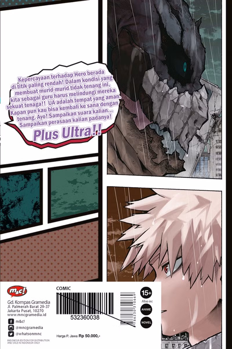Kepercayaan terhadap Hero berada di titik paling rendah! Dalam kondisi yang membuat murid-murid tidak tenang ini, kita sebagai guru harus melindungi mereka sekuat tenaga!! UA adalah tempat yang aman. Kapan pun kau bisa kembali ke sana dengan tenang. Ayo! Sampaikan suara kalian… Sampaikan perasaan kalian padanya! Plus Ultra!!