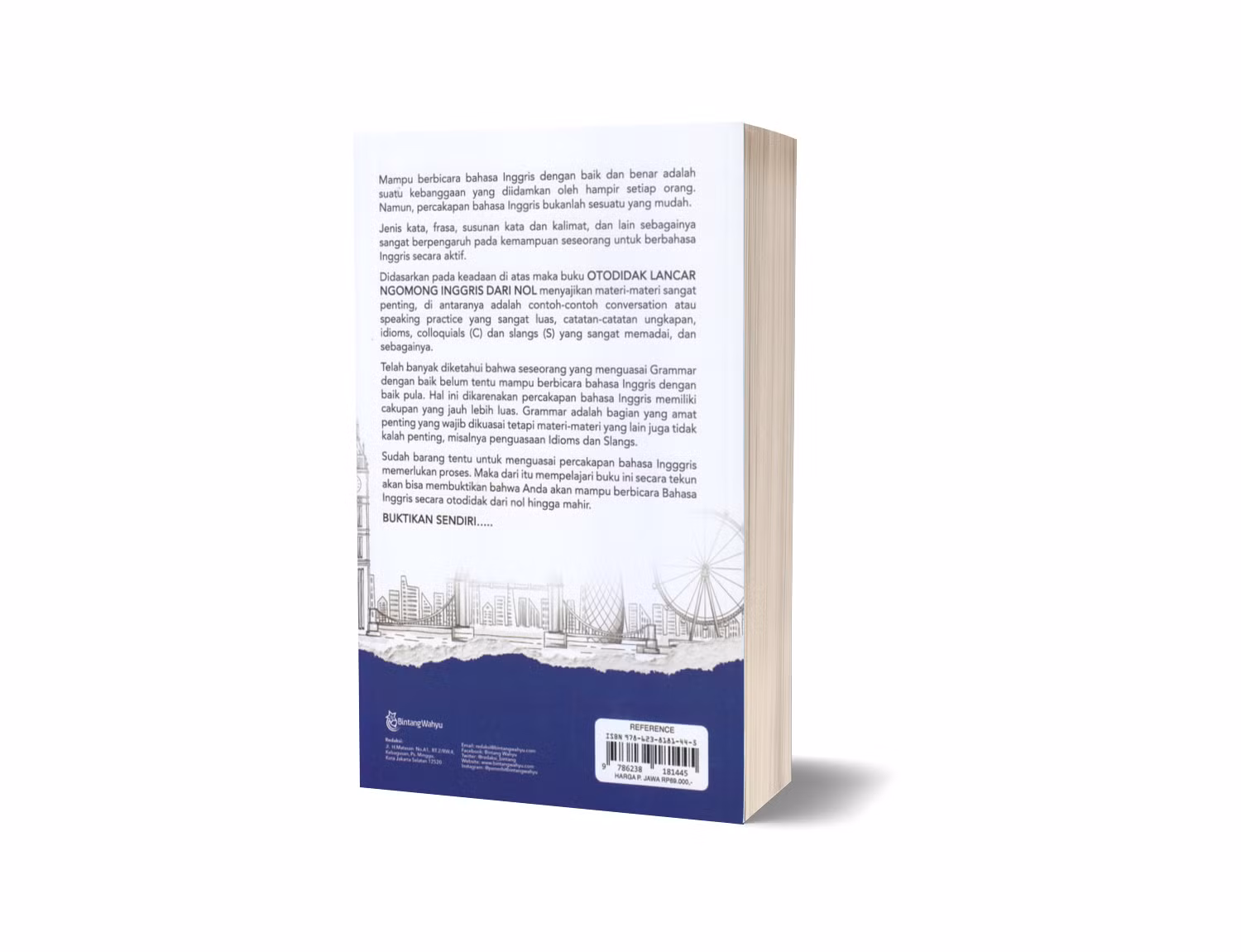Didasarkan pada keadaan di atas maka buku OTODIDAK LANCAR NGOMONG INGGRIS DARI NOL menyajikan materi-materi sangat penting, di antaranya adalah contoh-contoh conversation atau speaking practice yang sangat luas, catatan-catatan ungkapan, idioms, colloquials (C) dan slangs (S) yang sangat memadai, dan sebagainya.