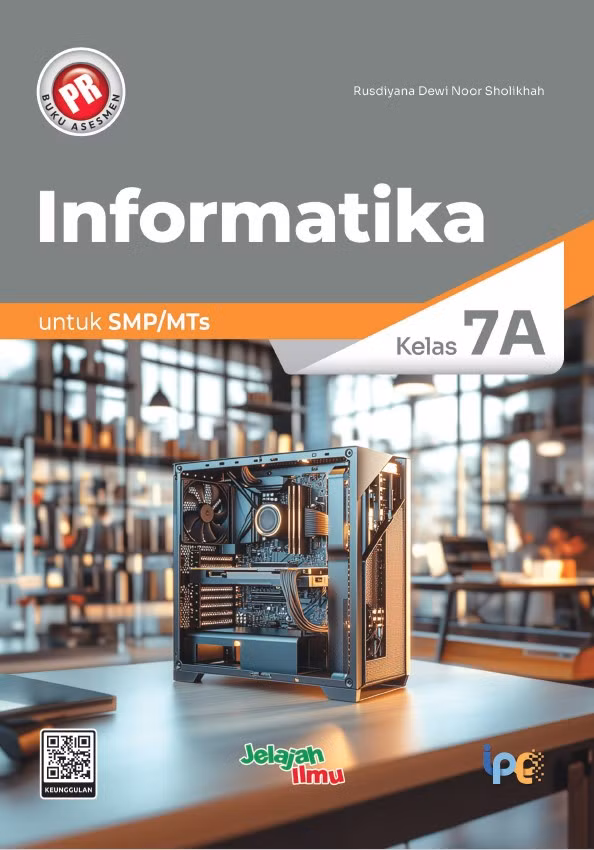 Buku PR Informatika untuk SMP/MTs Kelas 7A memiliki 4 bab, yaitu Bab 1 Berpikir Komputasional, Bab 2 Teknologi Informasi dan Komunikasi pada Internet, Bab 3 Mengenal Sistem Komputer, dan Bab 4 Jaringan Komputer dan Internet. Buku ini dilengkapi dengan berbagai jenis asesmen, yaitu Asesmen pada setiap akhir subbab, Asesmen Tengah Semester, dan Asesmen Akhir Semester. Berbagai asesmen tersebut digunakan untuk mengukur ketercapaian pembelajaran peserta didik dari sisi kognitif yang diukur melalui tes tertulis.