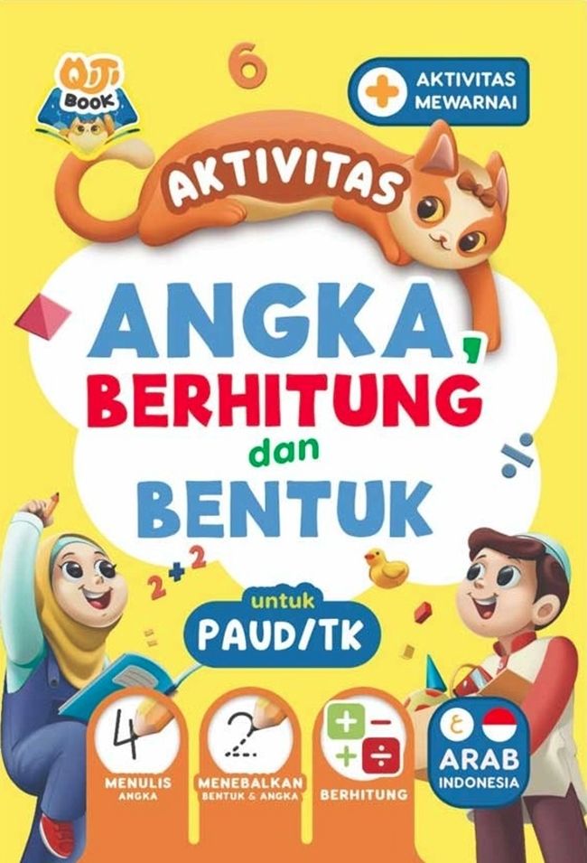 Materi Qiti Book Aktivitas Bentuk, Angka & Berhitung dibuat dengan menarik dan sederhana yang disesuaikan untuk anak pada jenjang PAUD, TK dan RA. Buku ini bertujuan agar anak dapat mengenal dan menulis angka 1—20. Diawali dengan mengenal dan menebalkan bentuk, menebalkan bentuk dapat bertujuan sebagai media belajar anak dalam menggenggam alat tulis terlebih dahulu serta melatih motorik halus pada anak. Terdapat aktivitas berhitung terdiri dari penjumlahan dan pengurangan dengan ilustrasi, membaca angka dalam bahasa arab – indonesia, mengenal dan mewarnai hewan dan benda lho.. asik sekali belajar jadi lebih menyenangkan!