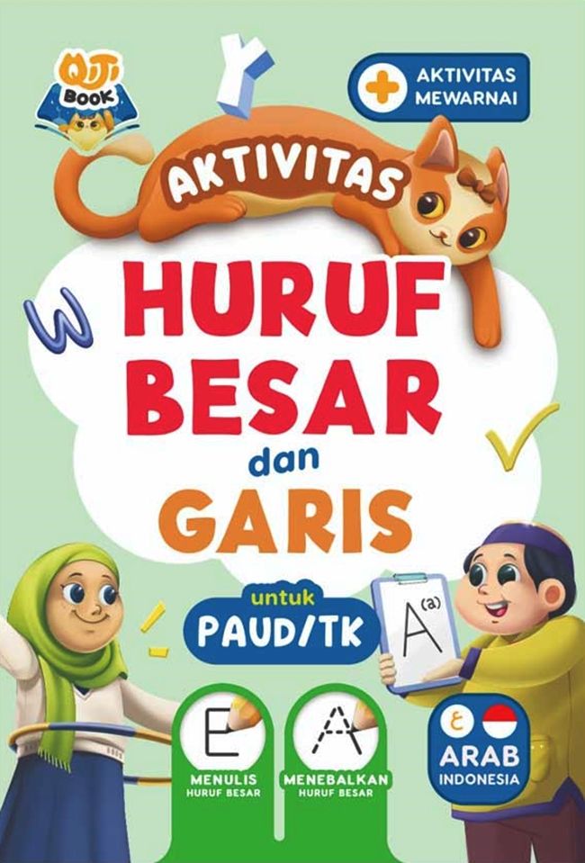 Materi Qiti Book Aktivitas Garis dan Huruf Besar dibuat dengan menarik dan sederhana yang disesuaikan untuk anak pada jenjang PAUD, TK dan RA. Buku ini bertujuan agar anak dapat mengenal dan menulis huruf besar a—z yang diawali dengan menebalkan garis agar anak dapat belajar untuk menggenggam alat tulis terlebih dahulu serta melatih motorik halus pada anak. Terdapat juga aktivitas membaca kosakata dalam bahasa arab – indonesia, mengenal dan mewarnai hewan dan benda lho.. asik sekali belajar jadi lebih menyenangkan!