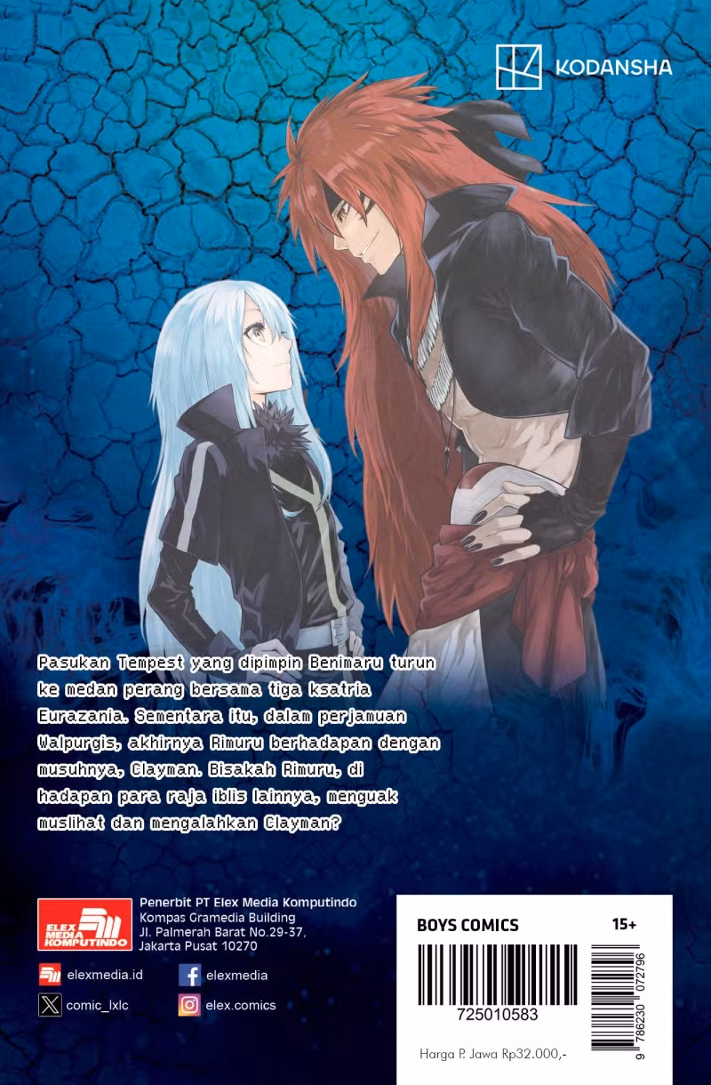 Pasukan Tempest yang dipimpin Benimaru turun ke medan perang bersama tiga ksatria Eurazania. Sementara itu, dalam perjamuan Walpurgis, akhirnya Rimuru berhadapan dengan musuhnya, Clayman. Bisakah Rimuru, di hadapan para raja iblis lainnya, menguak muslihat dan mengalahkan Clayman?