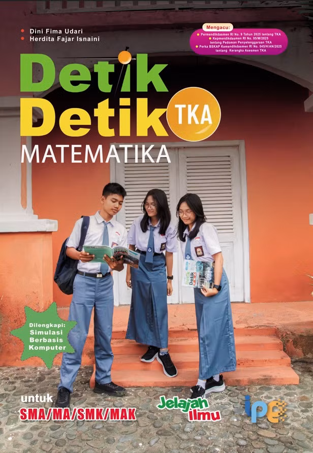 Buku Detik-Detik TKA Matematika SMA/MA/SMK/MAK dirancang sebagai pendamping belajar yang komprehensif bagi siswa yang bersiap menghadapi Tes Kemampuan Akademik (TKA). Buku ini menggabungkan ringkasan materi yang padat dan mudah dipahami dengan berbagai latihan soal yang bervariasi, mulai dari soal-soal dasar hingga tingkat penalaran tinggi. Di awal, siswa diajak mengenali kemampuan dirinya melalui latihan awal yang membantu memetakan kekuatan dan kelemahan dalam memahami materi matematika. Selanjutnya, latihan-latihan mandiri disajikan secara sistematis agar siswa dapat berlatih dan memperkuat penguasaan konsep.