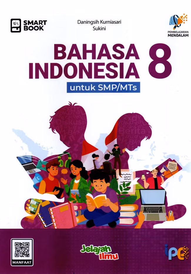 Buku Bahasa Indonesia 8 untuk SMP/MTs ini akan memberi pengalaman baru belajar Bahasa Indonesia. Pengalaman baru ini akan diperoleh peserta didik melalui konten-konten digital yang terkoneksi dengan buku ini. Peserta didik akan makin cakap mengoperasikan sarana belajar pada era digital. Peserta didik diajak belajar menggunakan video pembelajaran, audio pembelajaran, multimedia interaktif, dan materi Augmented Reality (AR).