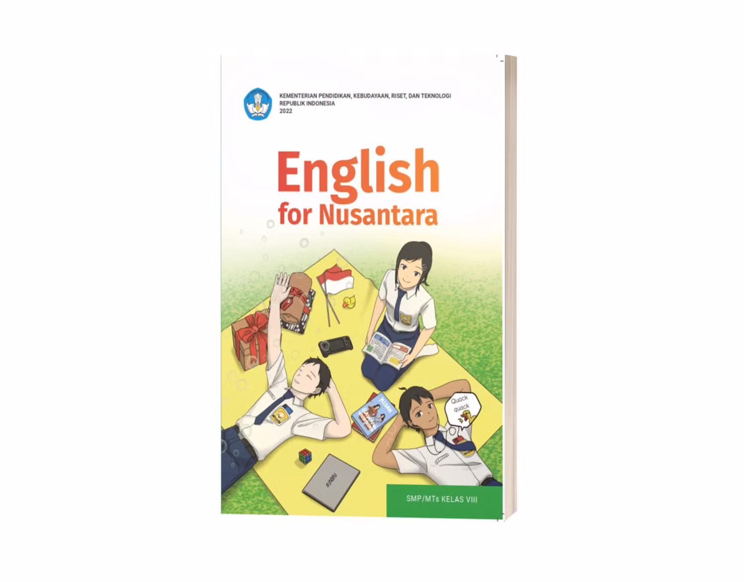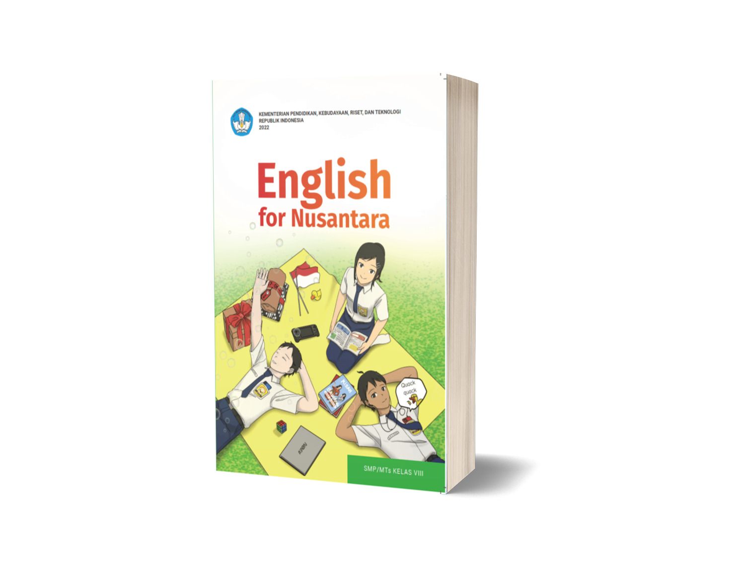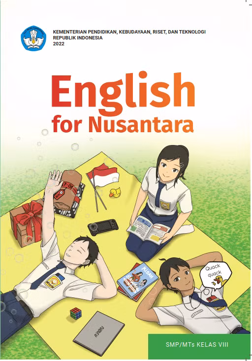 Untuk membantu pemerolehan kemampuan Bahasa Inggris kalian, Buku Peserta didik English for Nusantara menggunakan pendekatan GenreBased Approach yang dikombinasikan dengan proses pemerolehan Bahasa pertama dan bahasa tambahan yang beranjak dari keterampilan berbahasa lisan menuju bahasa tulis. Keterampilan berbahasa yang difokuskan pada buku ini meliputi menyimak, berbicara, membaca, memirsa, menulis dan merepresentasikan yang disajikan secara terpadu dalam berbagai jenis teks. Isi materi buku ini dikembangkan berdasarkan Capaian Pembelajaran yang dimuat dalam Kurikulum Merdeka dengan memperhatikan keterkaitan dari setiap tingkat. Contoh nyata keterkaitan itu adalah jenis teks yang digunakan dalam buku seri English for Nusantara ini. Buku Kelas VIII ini terkait dengan teks recount, narrative, descriptive, dan procedure. Teks recount dan narrative merupakan teks yang baru dipelajari di Kelas VIII sedangkan descriptive dan procedure merupakan jenis teks yang sudah pernah diajarkan di Kelas VII namun dikemas dengan topik yang baru.