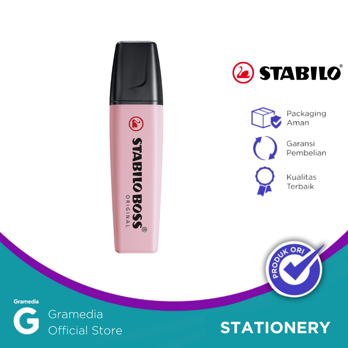 - Stabilo Boss Pastel Highlighter Warna Pink Blush untuk menandai bagian yang penting pada buku.