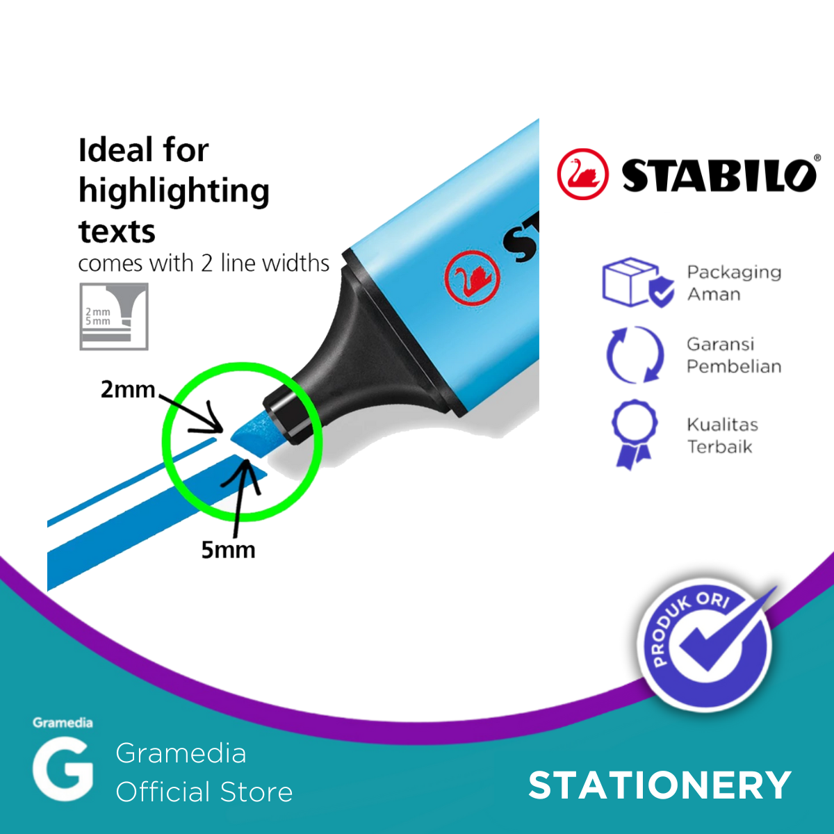 - Gunakan ujung STABILO dengan lebar garis 2 mm dan 5 mm untuk menggarisbawahi atau menyorot informasi.
