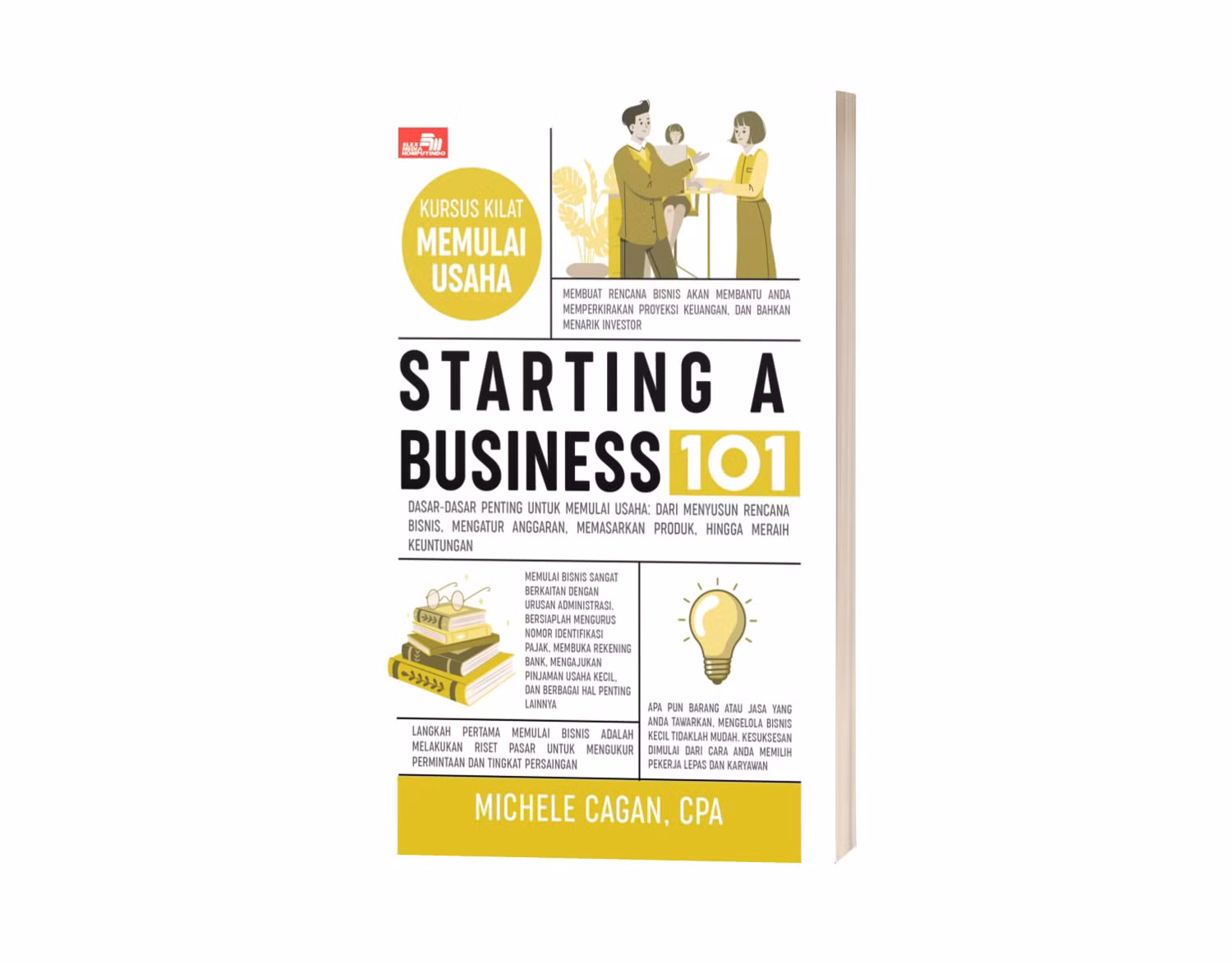 Memulai bisnis tidak harus serumit yang Anda bayangkan. Starting a Business 101 adalah panduan lengkap yang mudah dipahami, dan dirancang untuk membantu Anda meluncurkan usaha dengan cara yang paling sederhana dan menguntungkan. Buku ini sarat dengan saran ahli yang akan membantu setiap calon pengusaha mewujudkan ide mereka, mulai dari menyusun rencana bisnis dan anggaran, merekrut karyawan, hingga membayar pajak.