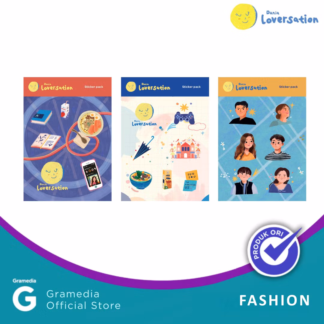 Tersedia dalam tiga lembar desain berbeda, sticker pack ini cocok ditempel di jurnal, laptop, botol minum, atau casing ponselmu. Bagi yang pernah tersentuh oleh cerita-cerita Dunia Loversation, ini adalah cara menyimpan perasaannya, dalam bentuk yang bisa dibawa ke mana saja.