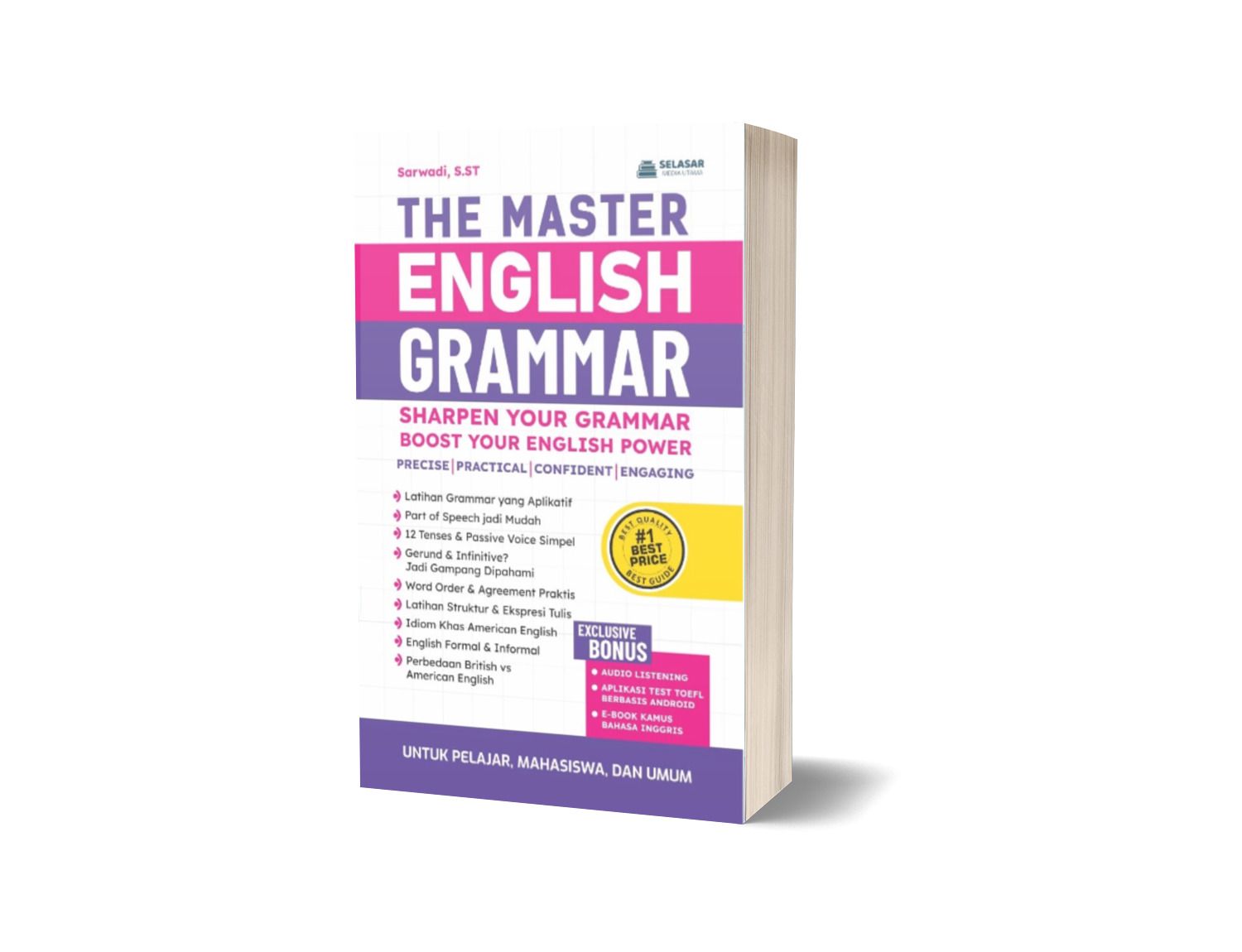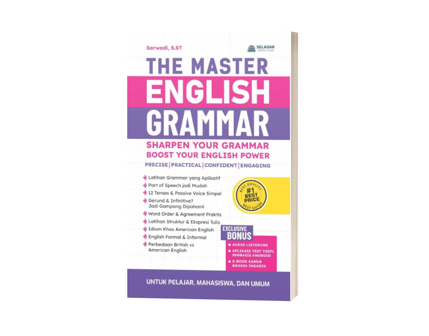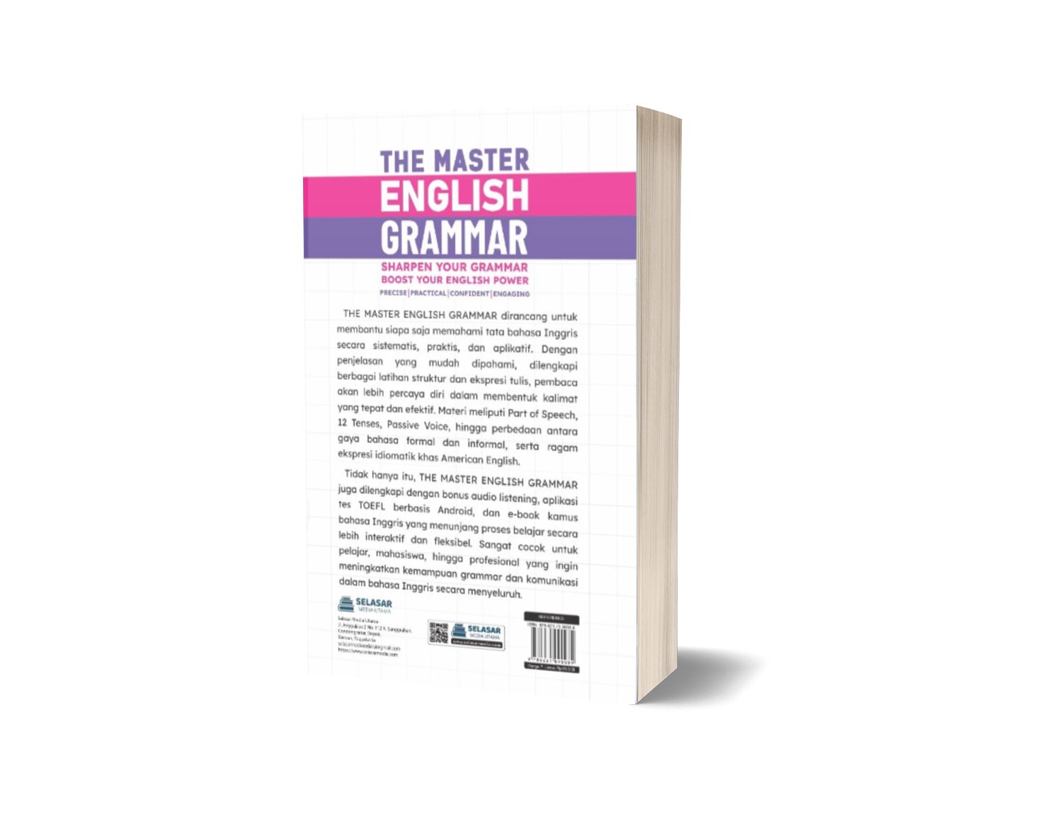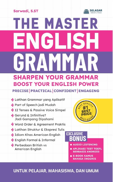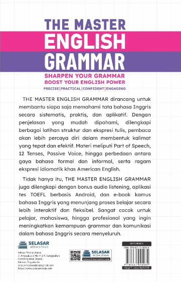 Tidak hanya itu. THE MASTER ENGLISH GRAMMAR juga dilengkapi dengan bonus audio listening, aplikasi tes TOEFL berbasis Android, dan e-book kamus bahasa Inggris yang menunjang proses belajar secara lebih interaktif dan fleksibel Sangat cocok untuk pelajar, mahasiswa hingga profesional yang ingin meningkatkan kemampuan grammar dan komunikasi dalam bahasa Inggris secara menyeluruh.