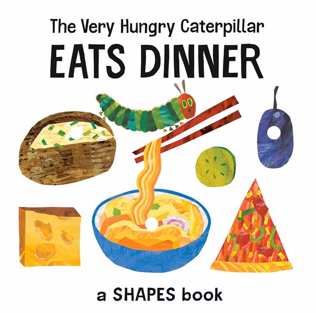 The Very Hungry Caterpillar is very hungry . . . for dinner! With die-cut pages, a simple narrative, and beautiful artwork from Eric Carle, this interactive board book is the perfect way to introduce the concept of shapes. From triangular pizza slices to round veggie burgers to squiggly ramen, there's something everyone will enjoy. This book will become a staple in the kitchen for even the littlest food critic in training!