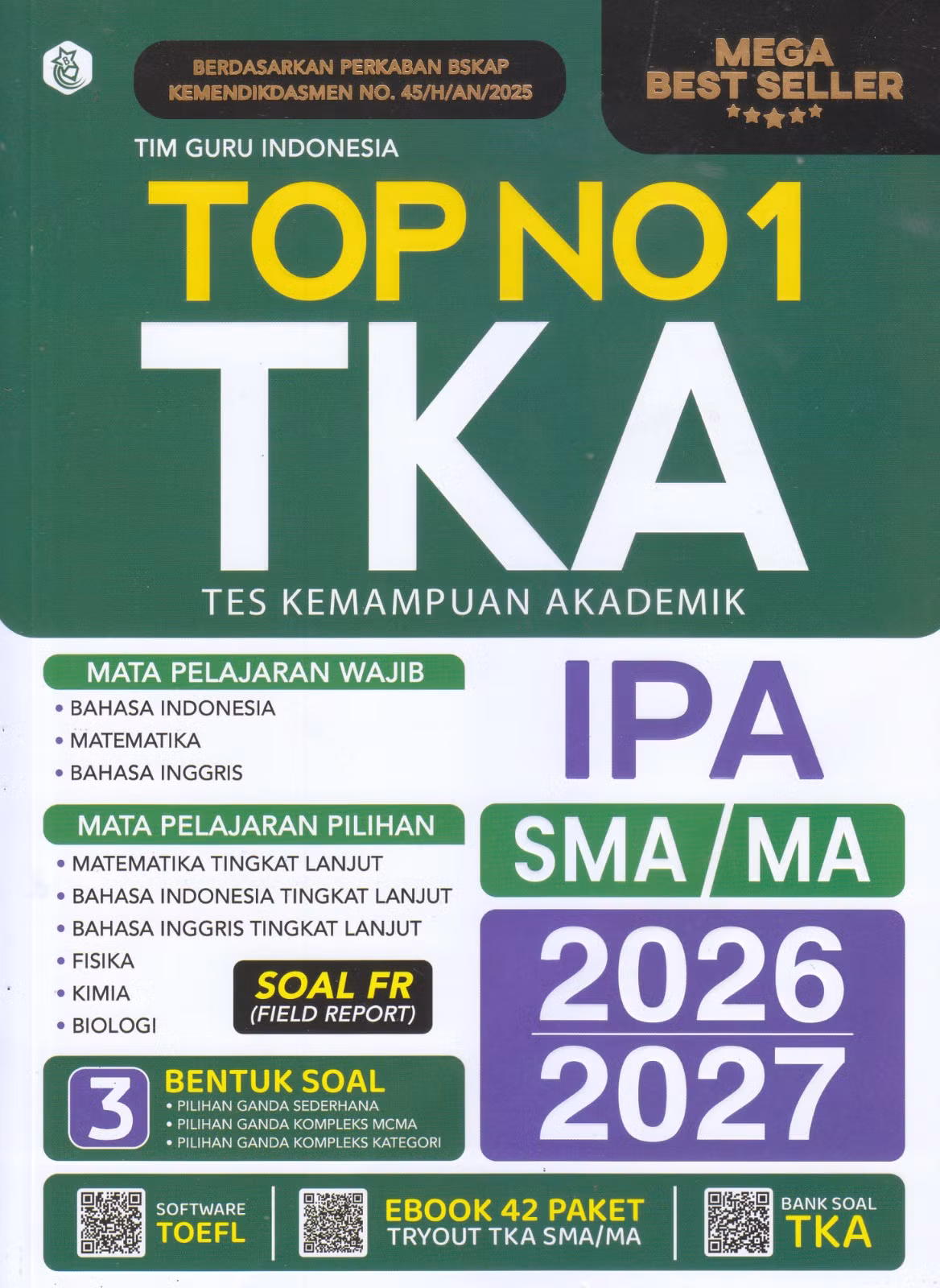 Buku TOP No. 1 Tes Kemampuan Akademik (TKA) SMA/MA IPA 2026/2027 disusun sesuai dengan Kisi-kisi Terbaru TKA, yaitu BERDASARKAN PERKABAN BSKAP KEMENDIKDASMEN NO. 45/H/AN/2025 .