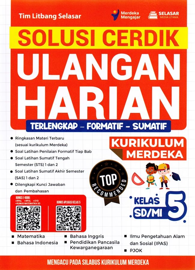 Buku SOLUSI CERDIK ULANGAN HARIAN ini sebagai pendamping belajar bagi siswa dalam memahami konsep-konsep baru dalam pembelajaran di sekolah. Buku ulangan harian ini terdiri dari 6 mata pelajaran diantaranya Matematika, Bahasa Indonesia, Bahasa Inggris, Pendidikan Pancasila, IPAS, dan PJOK.